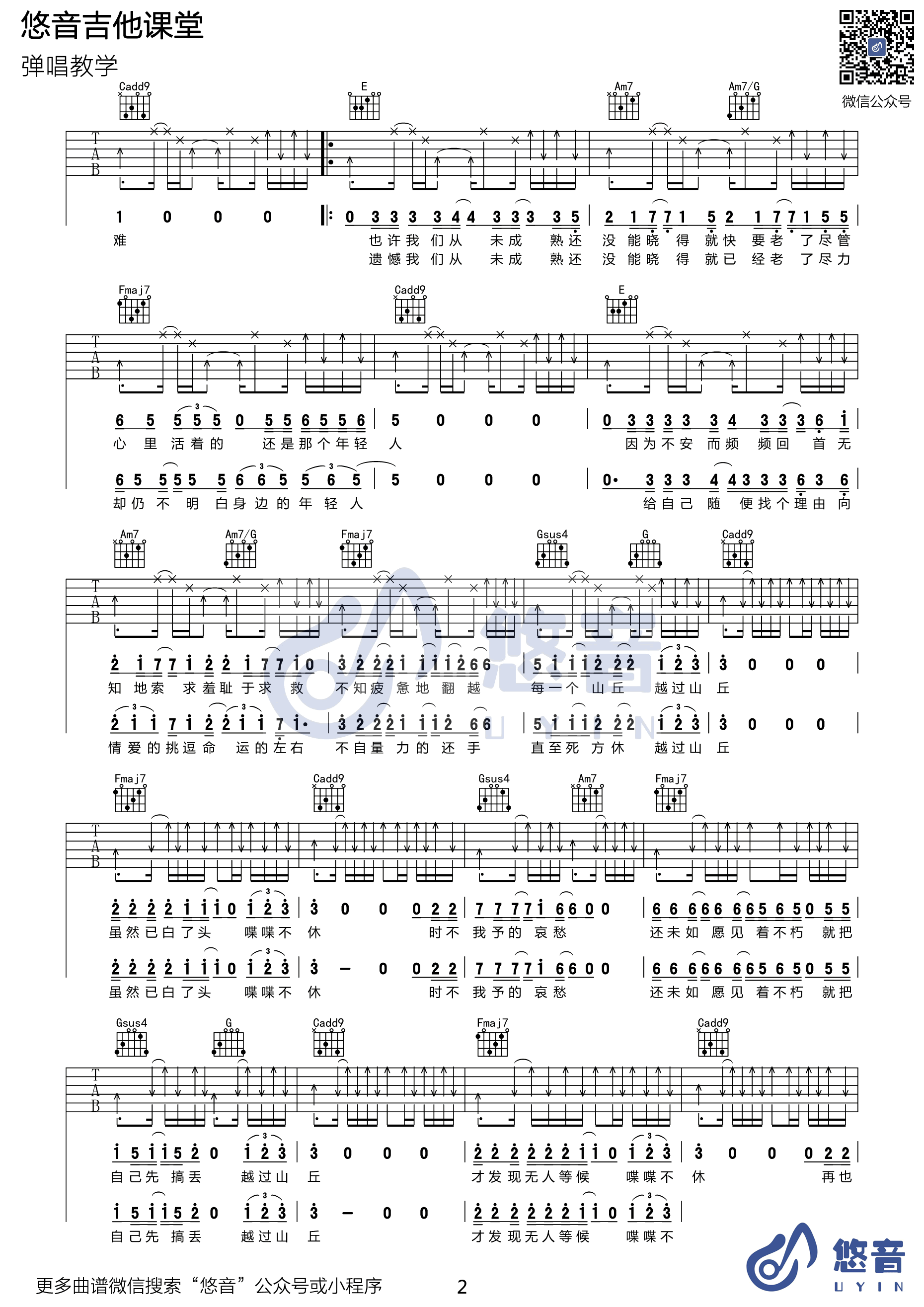 曲谱介绍: 《山丘》,李宗盛的一首经典代表作品,歌曲是一则叙事的诗,更是是一个人的人生历程。山丘六线谱,C调精编版,三张弹唱图片谱,悠音出品,琴谱网网整理上传。 歌曲唱出对逝去美好时光的沉湎和惋惜,人生路上每一个人都会翻越一座座山丘,也许每一次翻越都是失望,但每一次翻越都会怀着希望。即使无人等候,只要希望尚在,脚步就不会停歇。