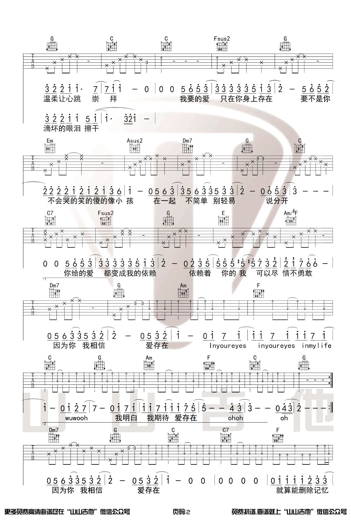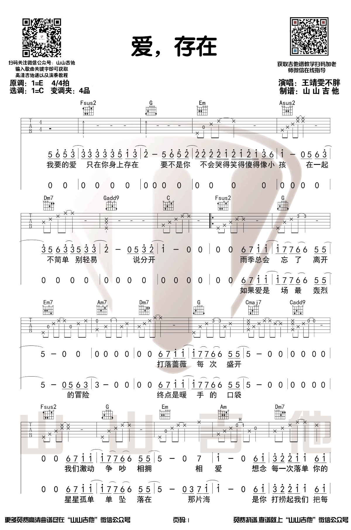 爱存在吉他谱 - 王靖雯不胖 - 吉他弹唱谱