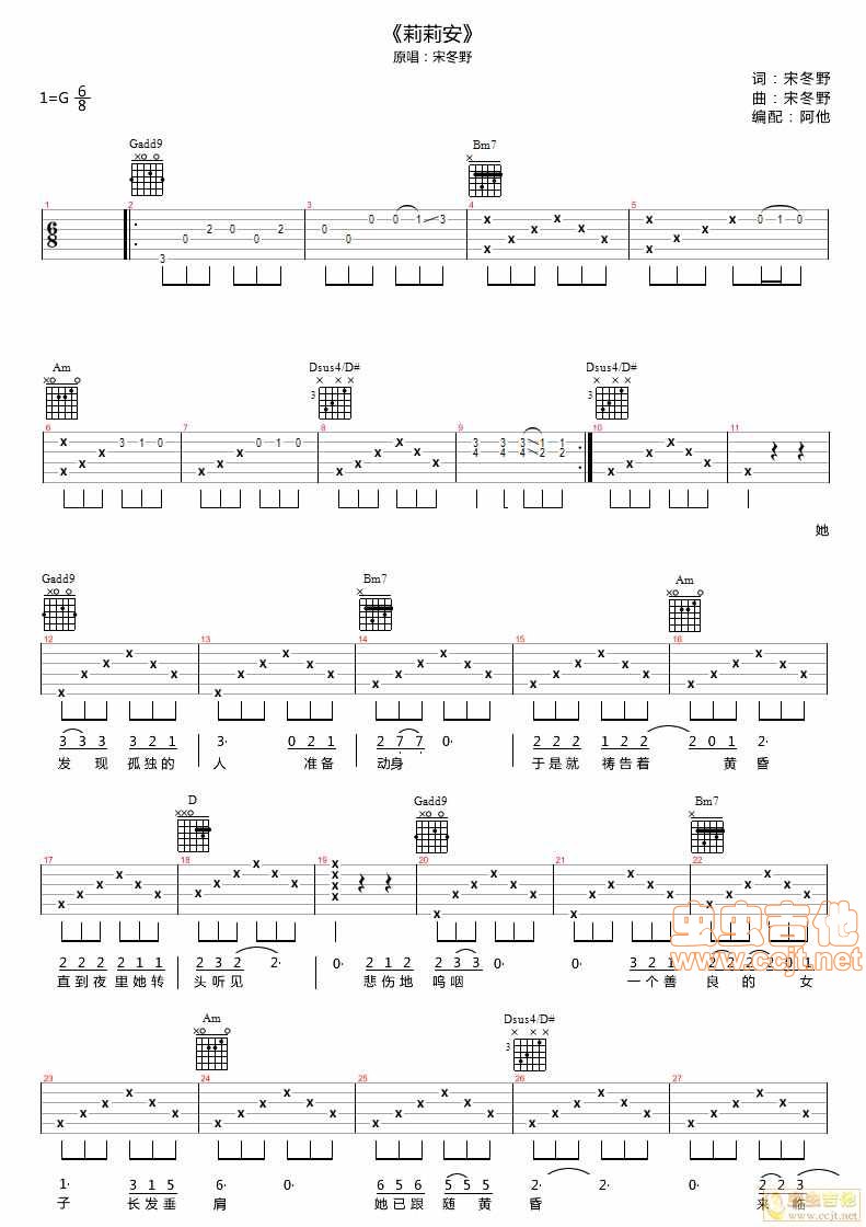 莉莉安吉他谱 - 宋冬野 - 吉他弹唱谱
