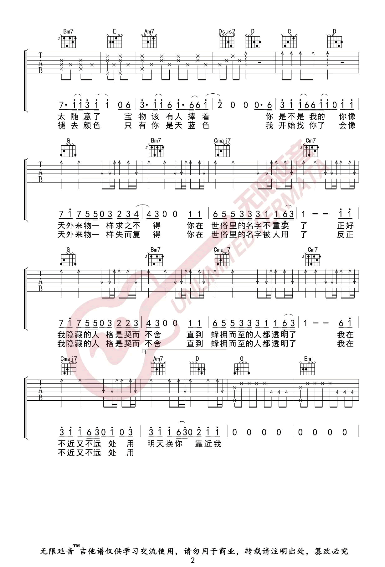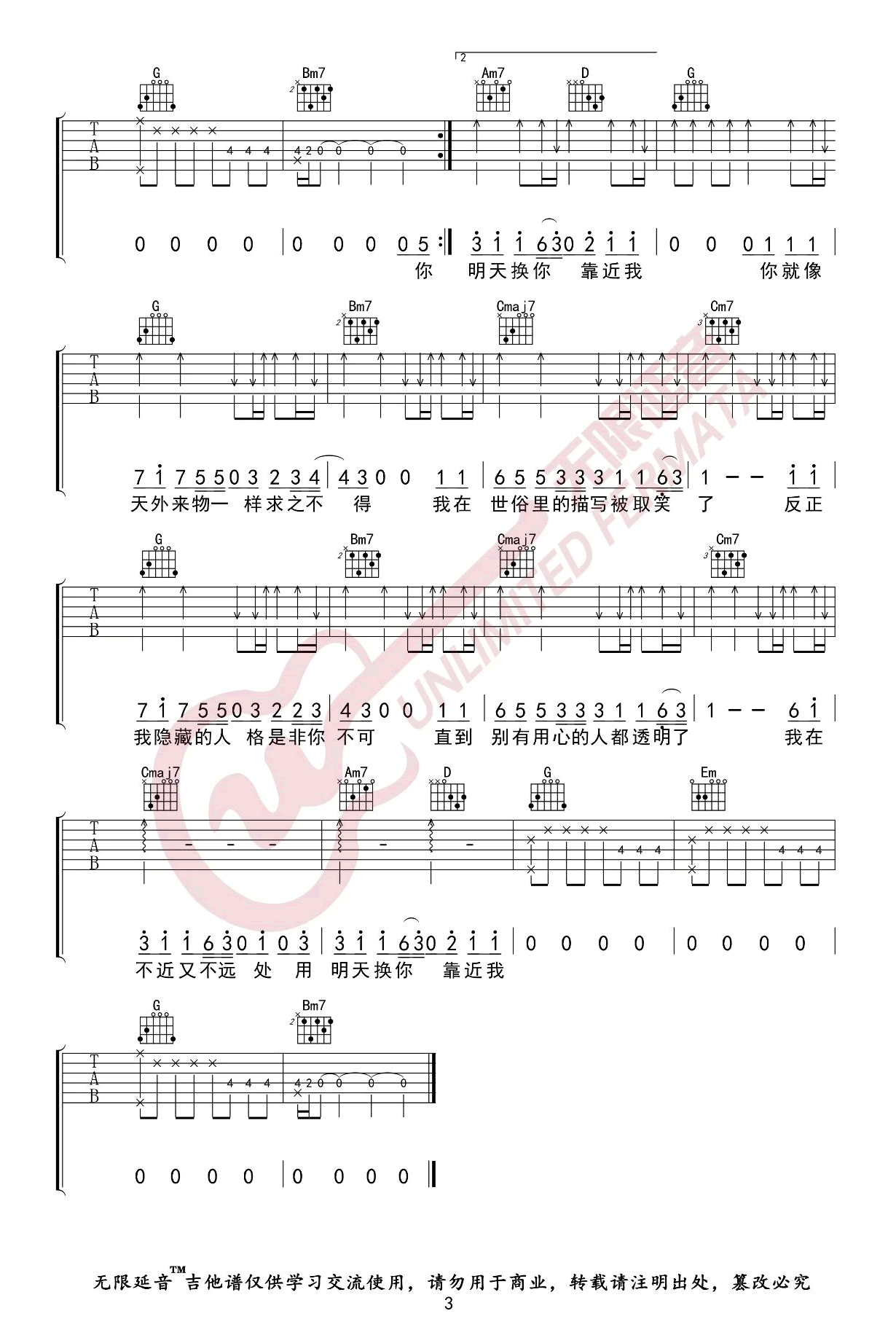 当前位置:琴谱网>吉他弹唱>天外来物