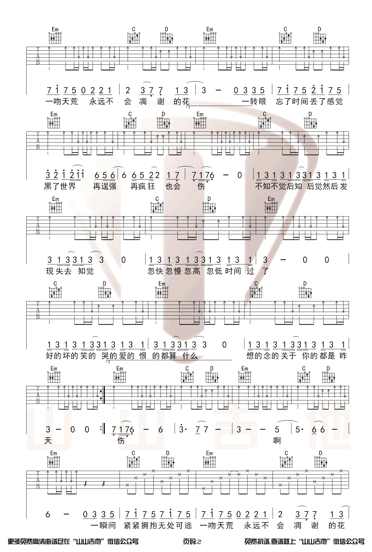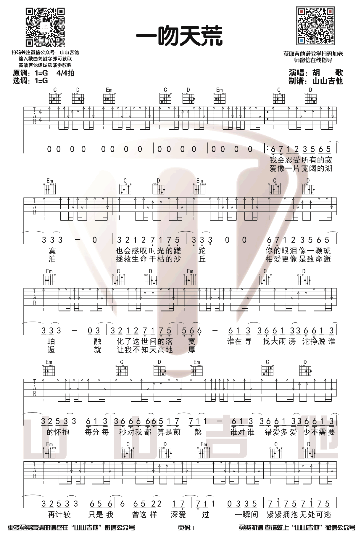 一吻天荒吉他谱 - 胡歌 - 吉他弹唱谱
