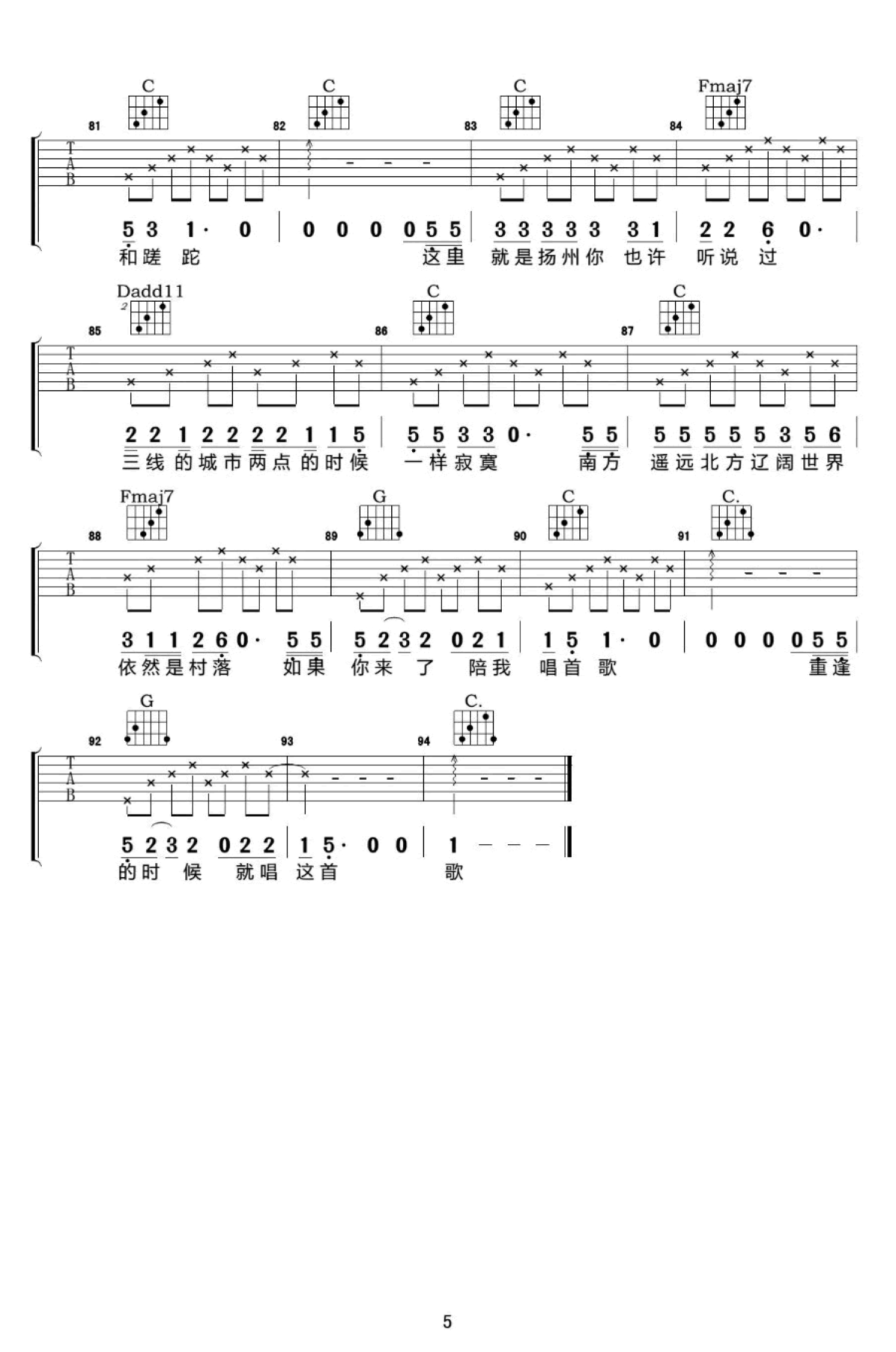 当前位置:琴谱网>吉他弹唱>扬州