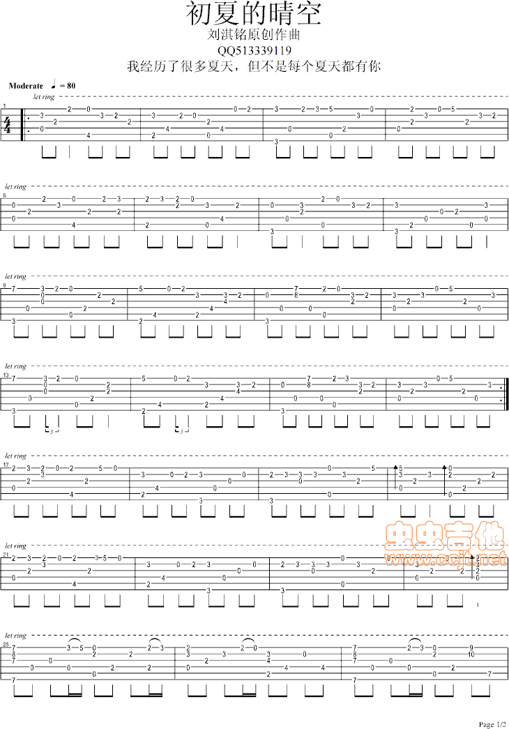 初夏的晴空(刘淇铭原创吉他曲)吉他谱 - 吉他弹唱谱