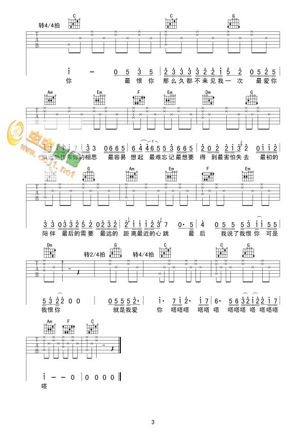曲谱介绍: 《最天使》吉他弹唱谱,共有3张高清图谱。