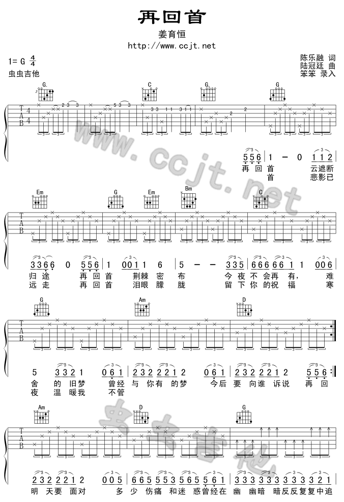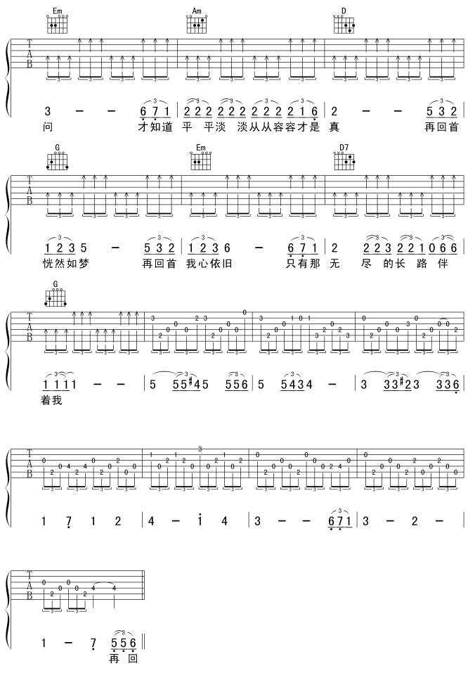 再回首吉他谱 - 吉他弹唱谱