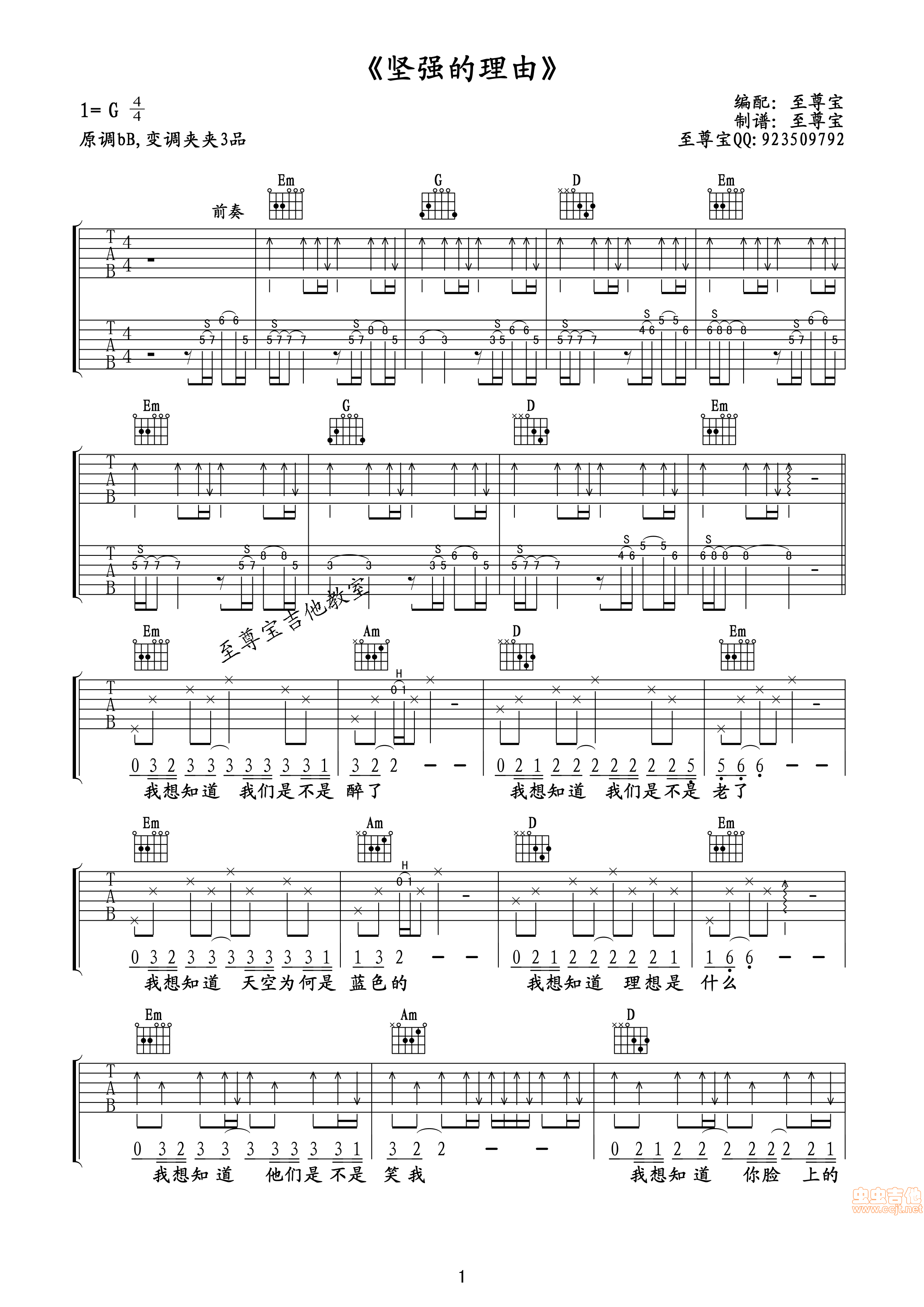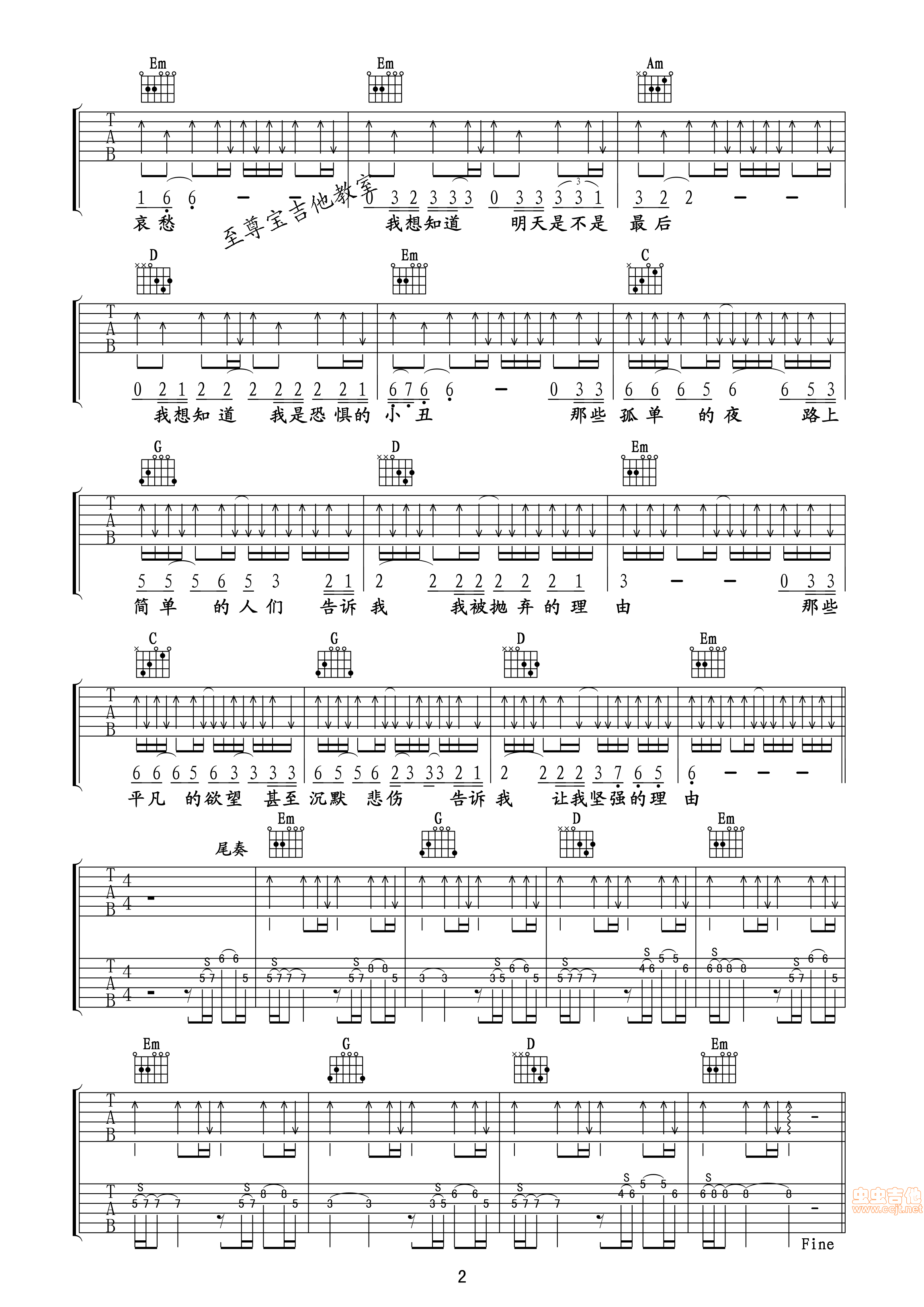 曲谱介绍: 角度乐队《坚强的理由》吉他弹唱谱,共有2张高清图谱,免翻页排版设计。