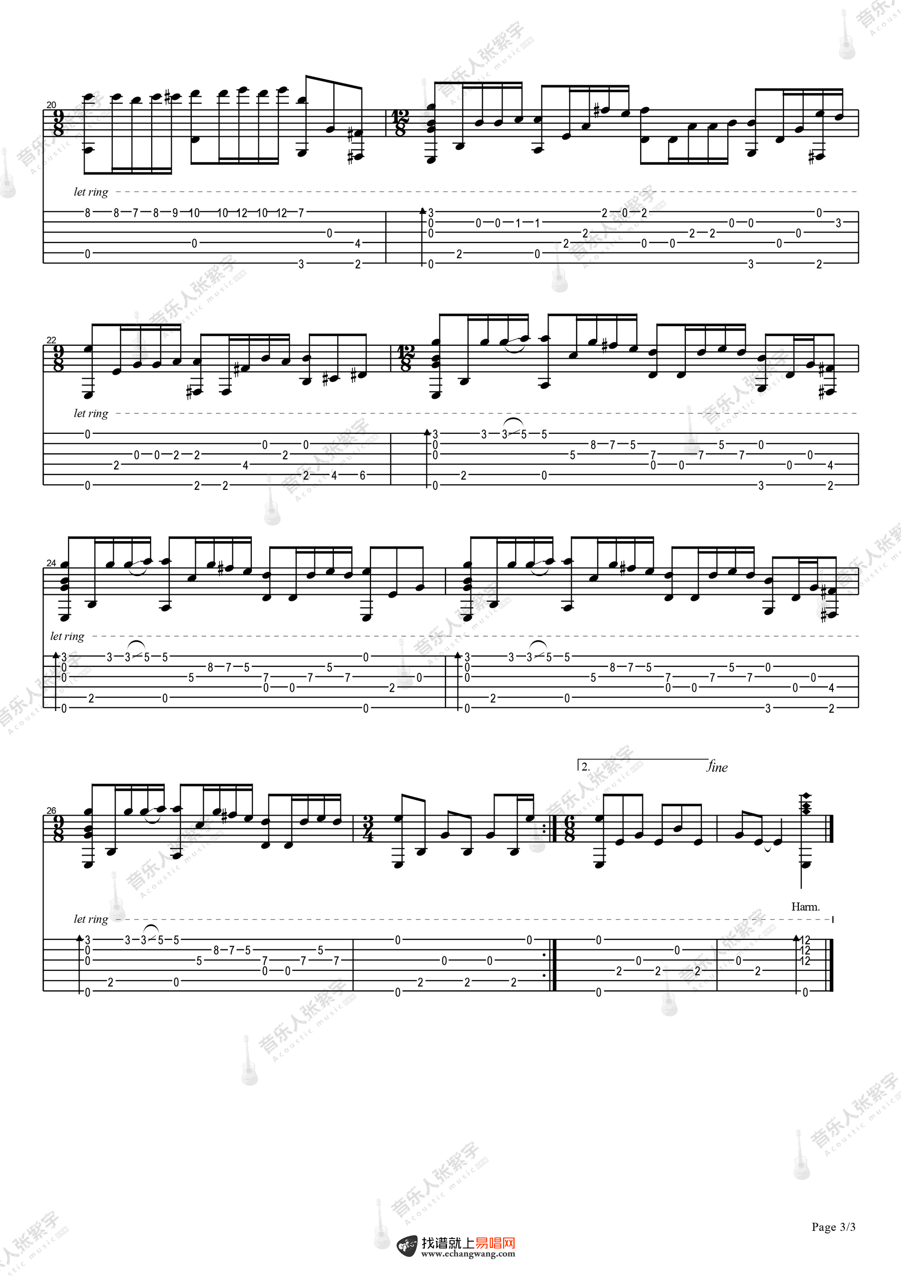 曲谱介绍: 理查德克莱德曼《梦中的婚礼》吉他独奏谱,共有3张高清图谱。