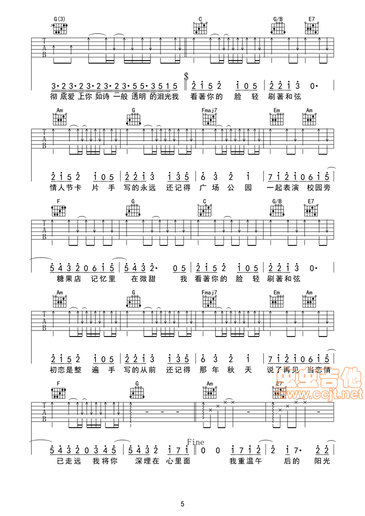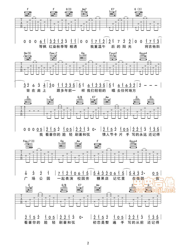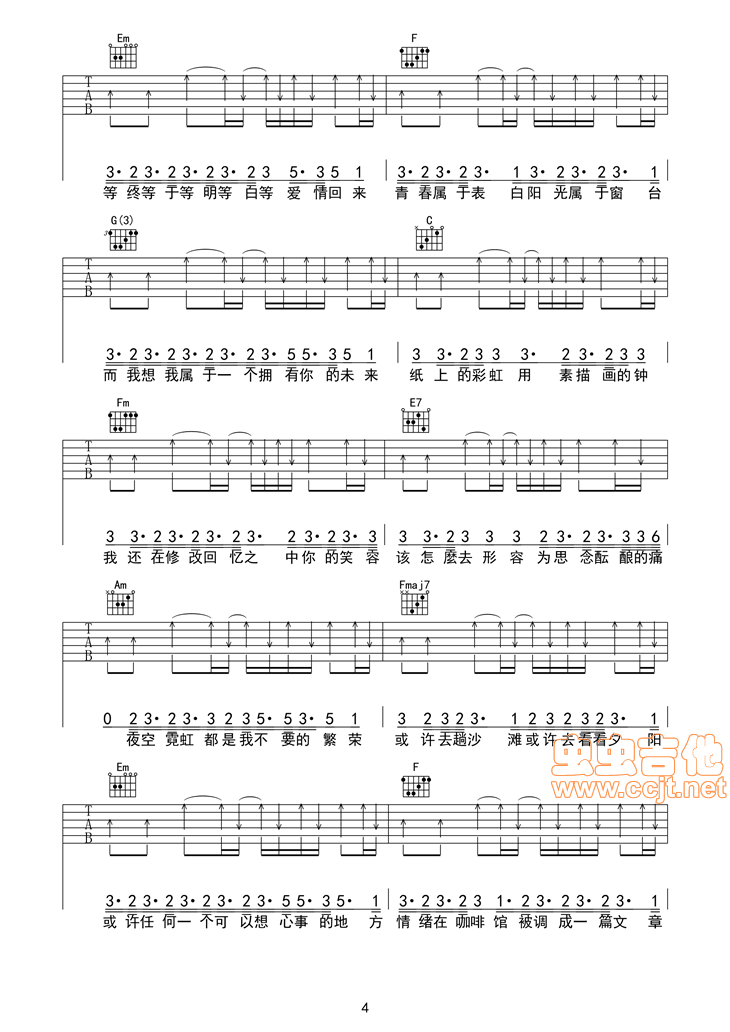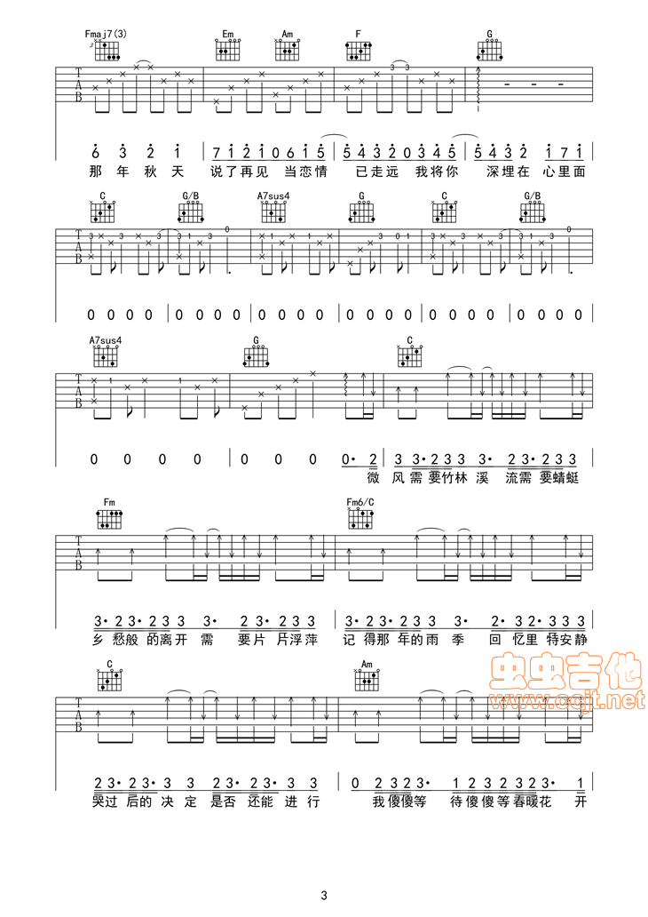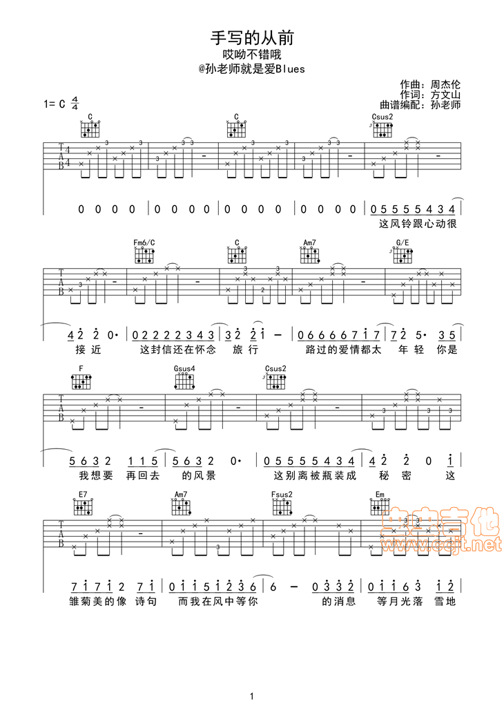 曲谱介绍: 《手写的从前》吉他弹唱谱,共有6张高清图谱。