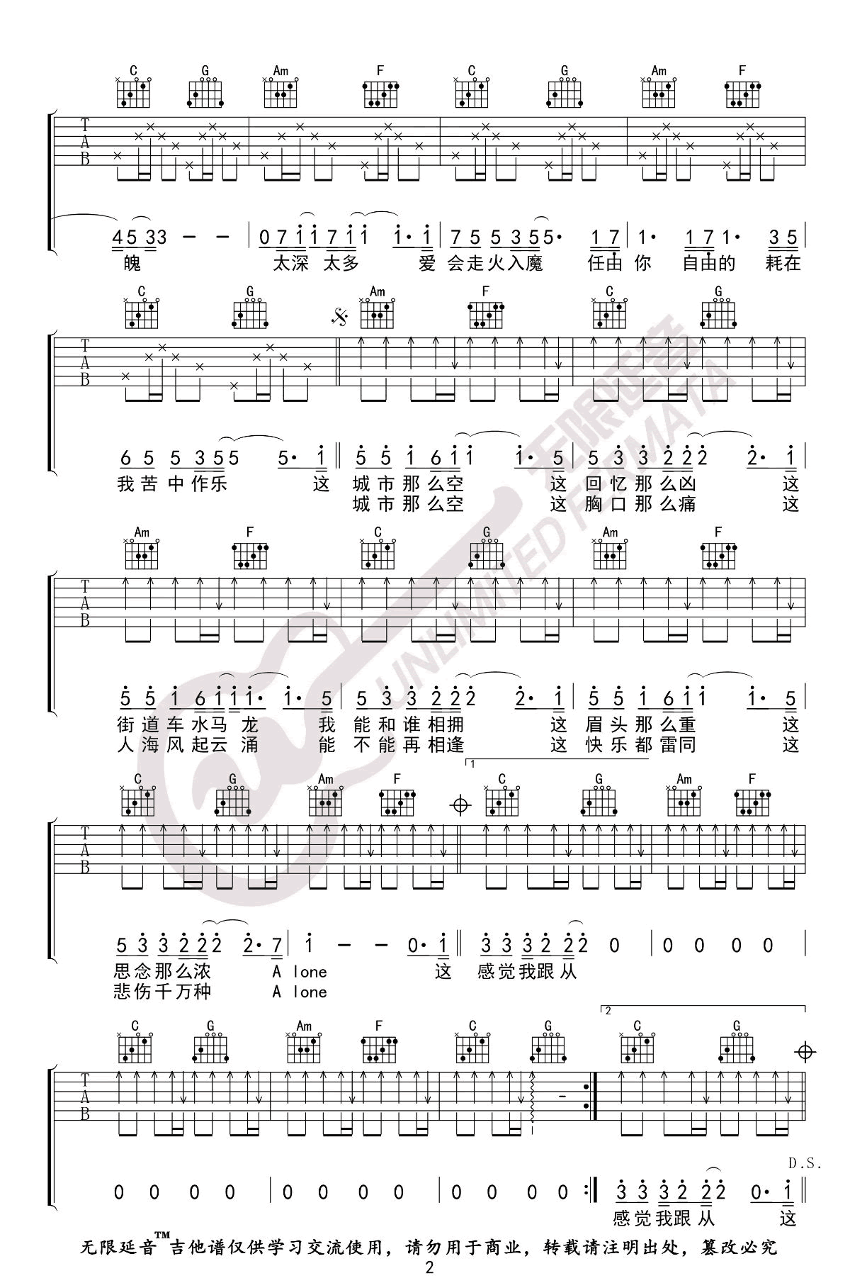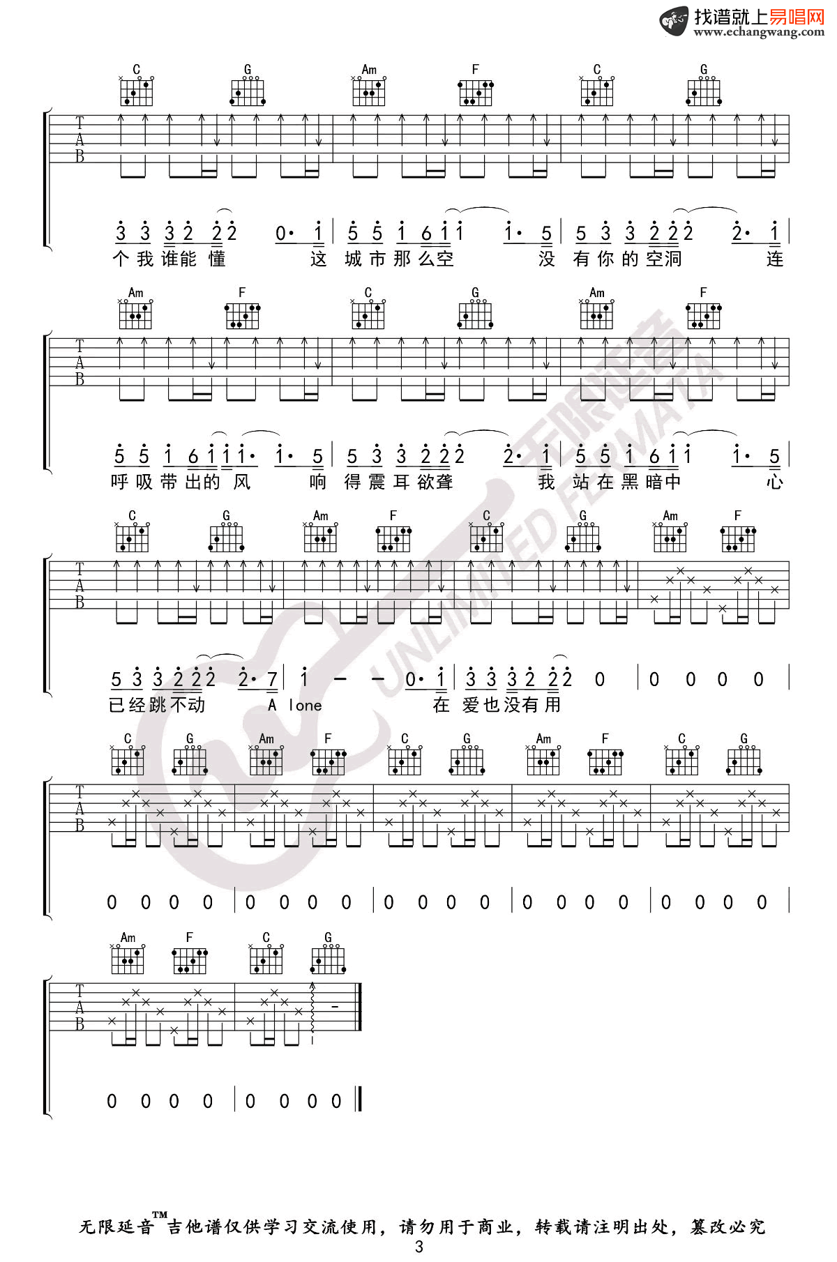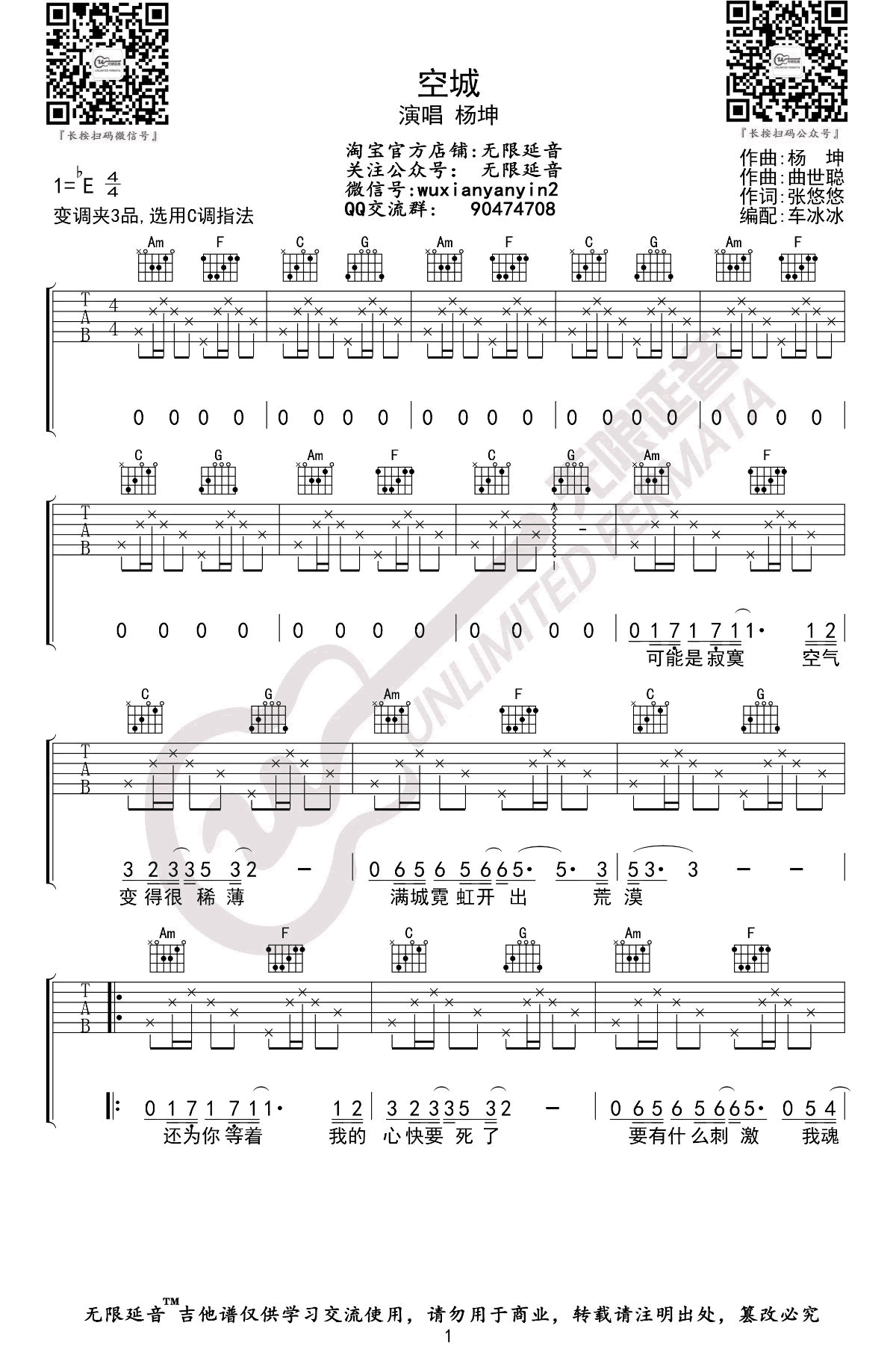 曲谱介绍: 杨坤《空城》吉他弹唱谱,共有3张高清图谱。