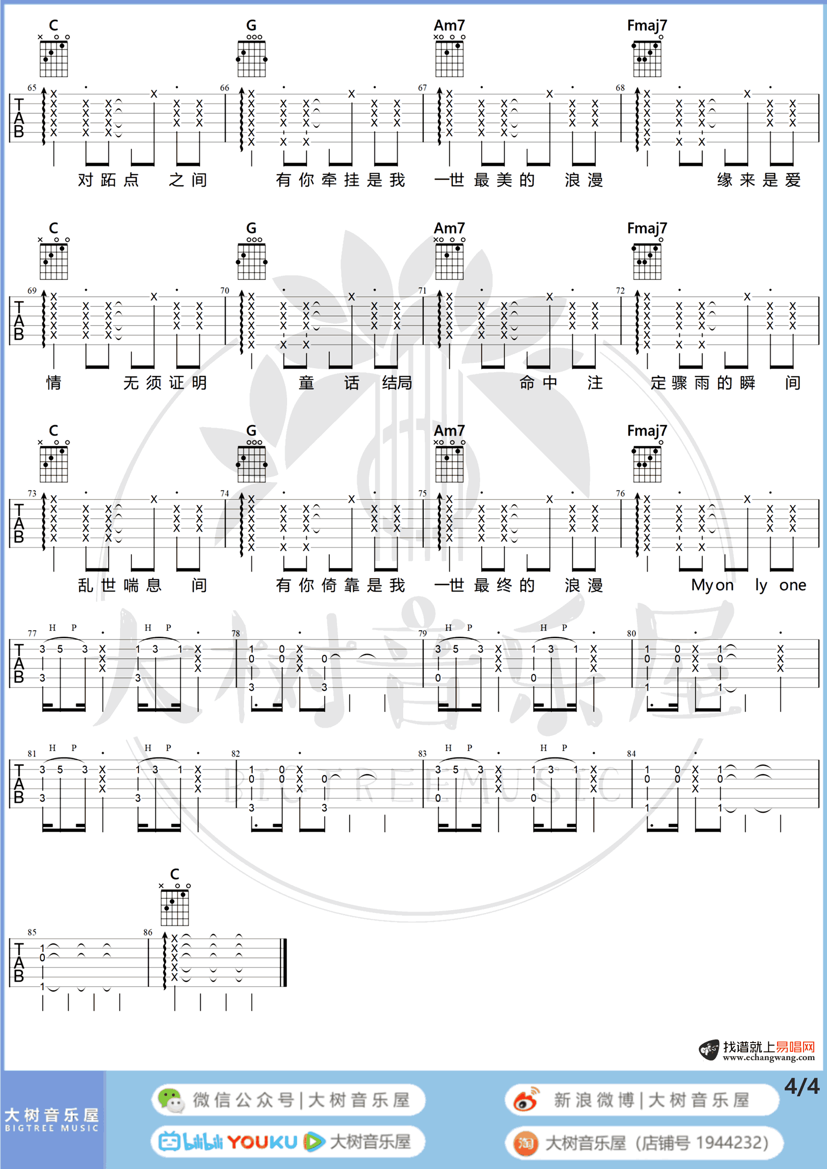 曲谱介绍: My《MyOnlyOne》吉他弹唱谱,共有4张高清图谱。
