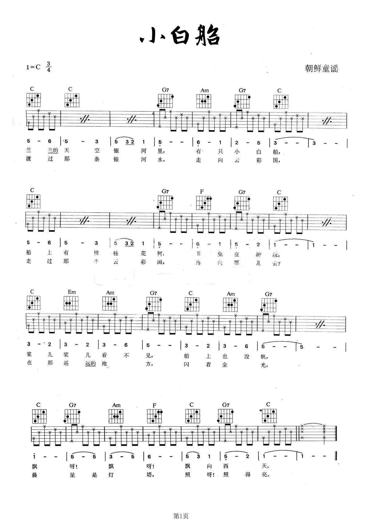 小白船吉他谱 - 儿歌 - 吉他弹唱谱