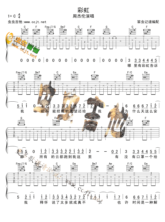 曲谱介绍: 《彩虹》吉他弹唱谱,共有3张高清图谱。