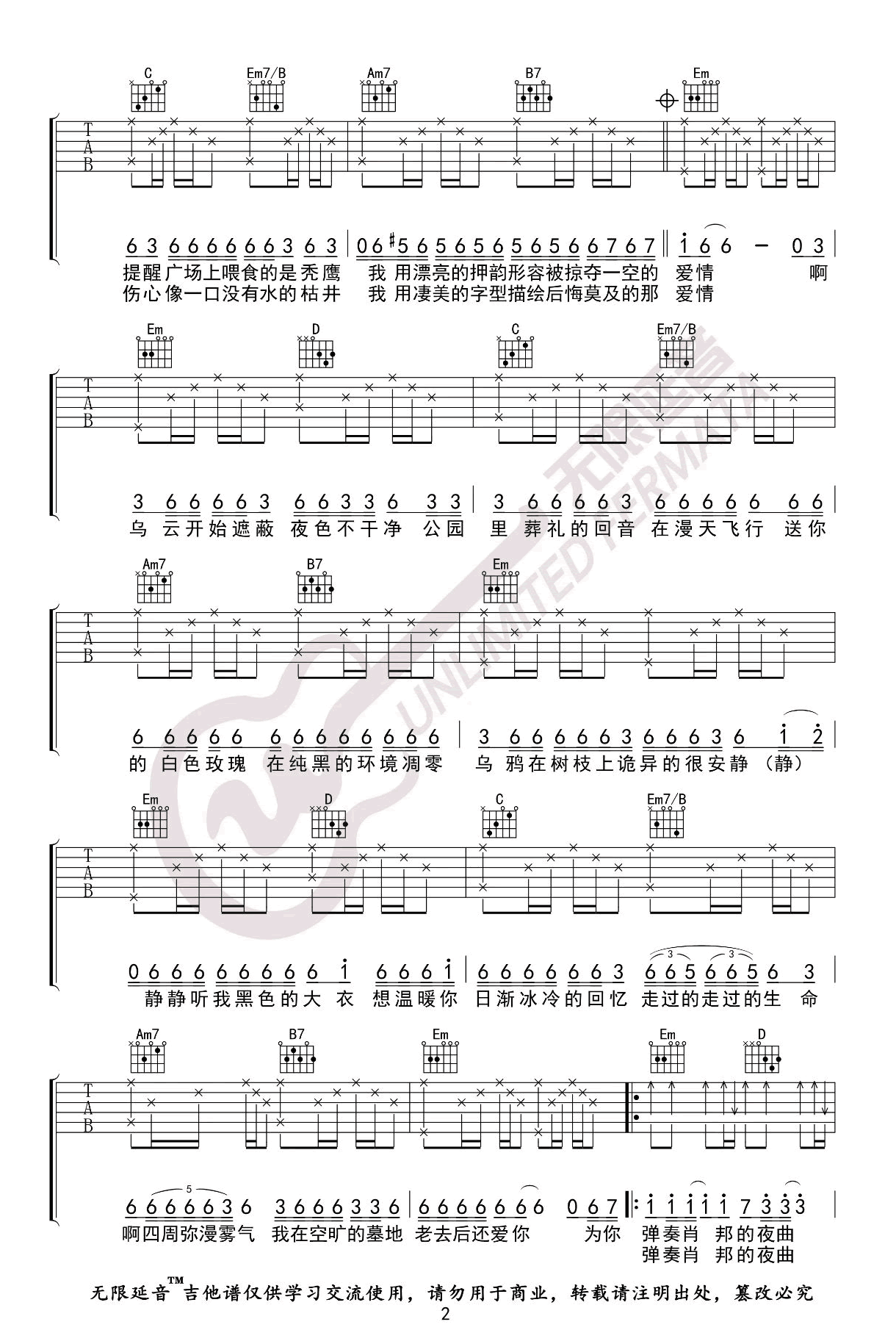 当前位置:琴谱网>吉他弹唱>夜曲