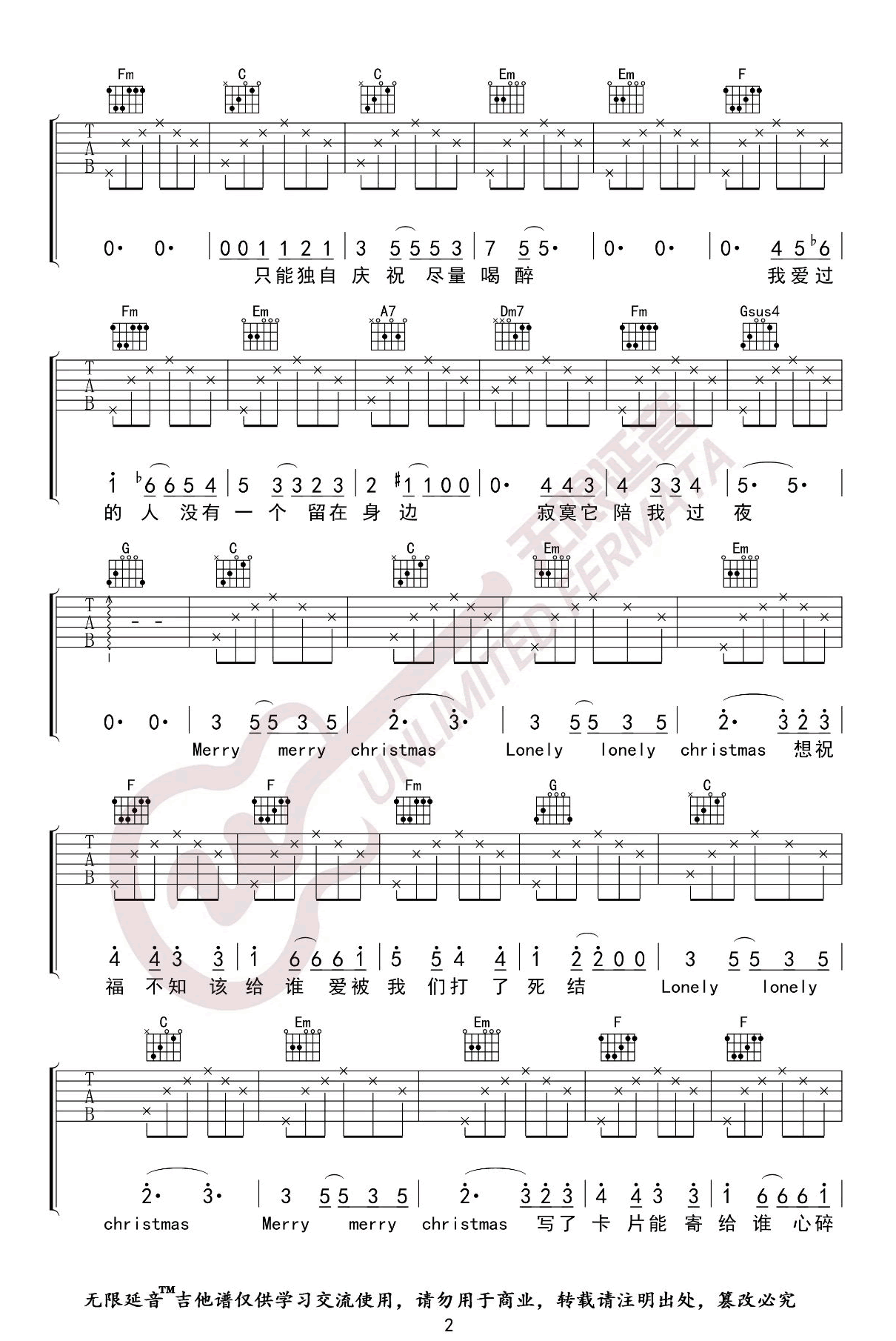 当前位置:琴谱网>吉他弹唱>圣诞结C调