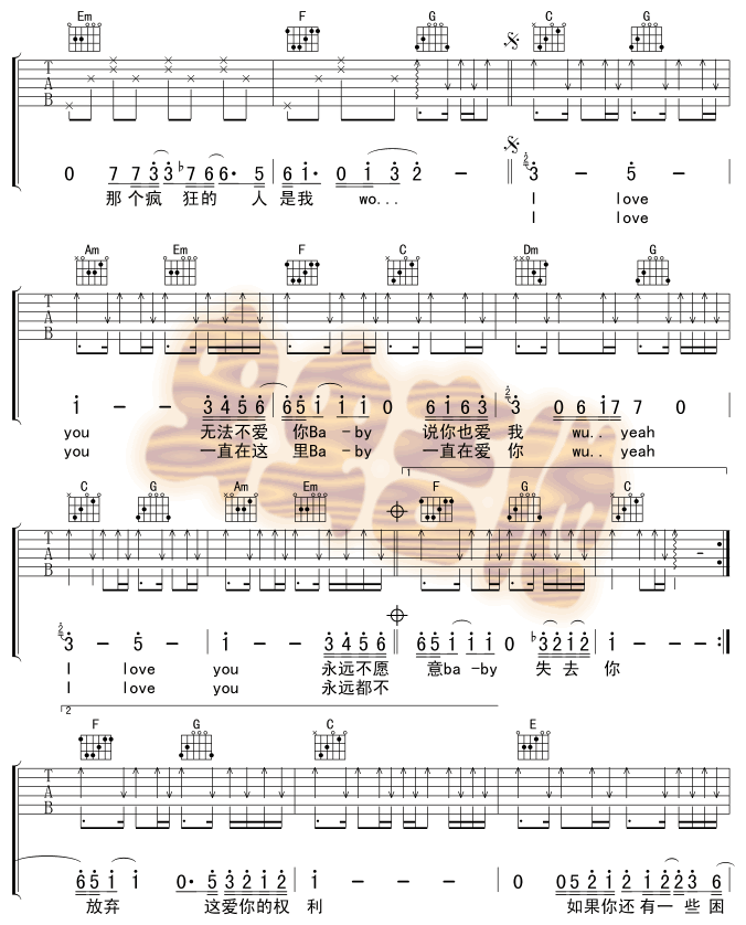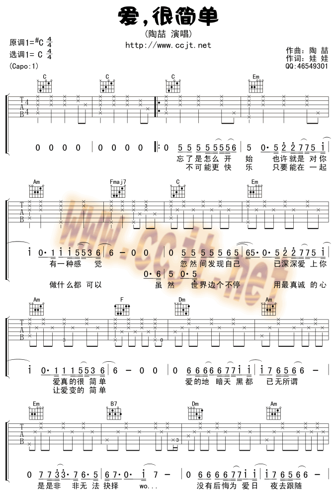 爱 很简单吉他谱 - 爱 - 吉他弹唱谱