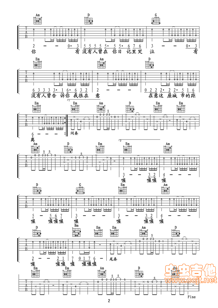 当前位置:琴谱网>吉他弹唱>有没有人告诉你