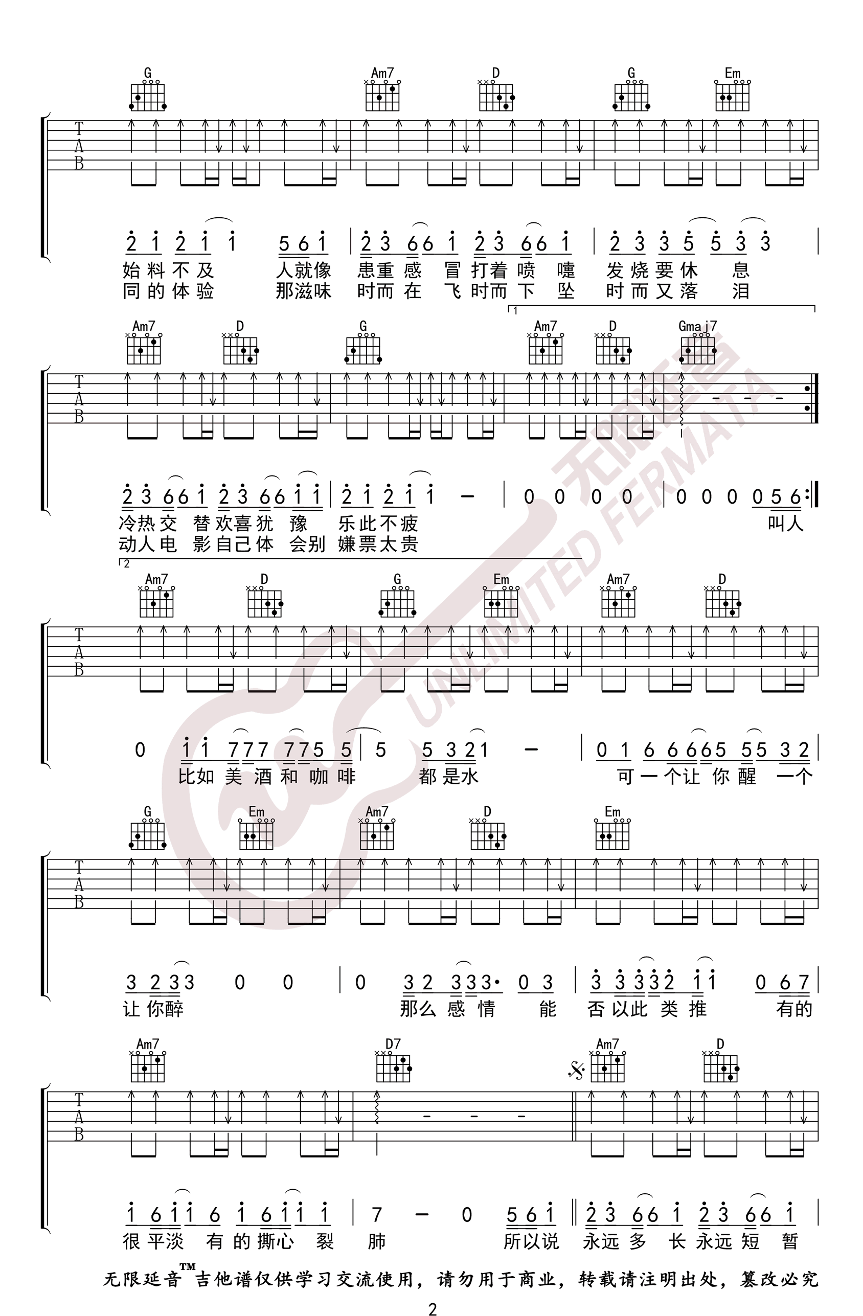 答案吉他谱 - 杨坤郭采洁 - 吉他弹唱谱