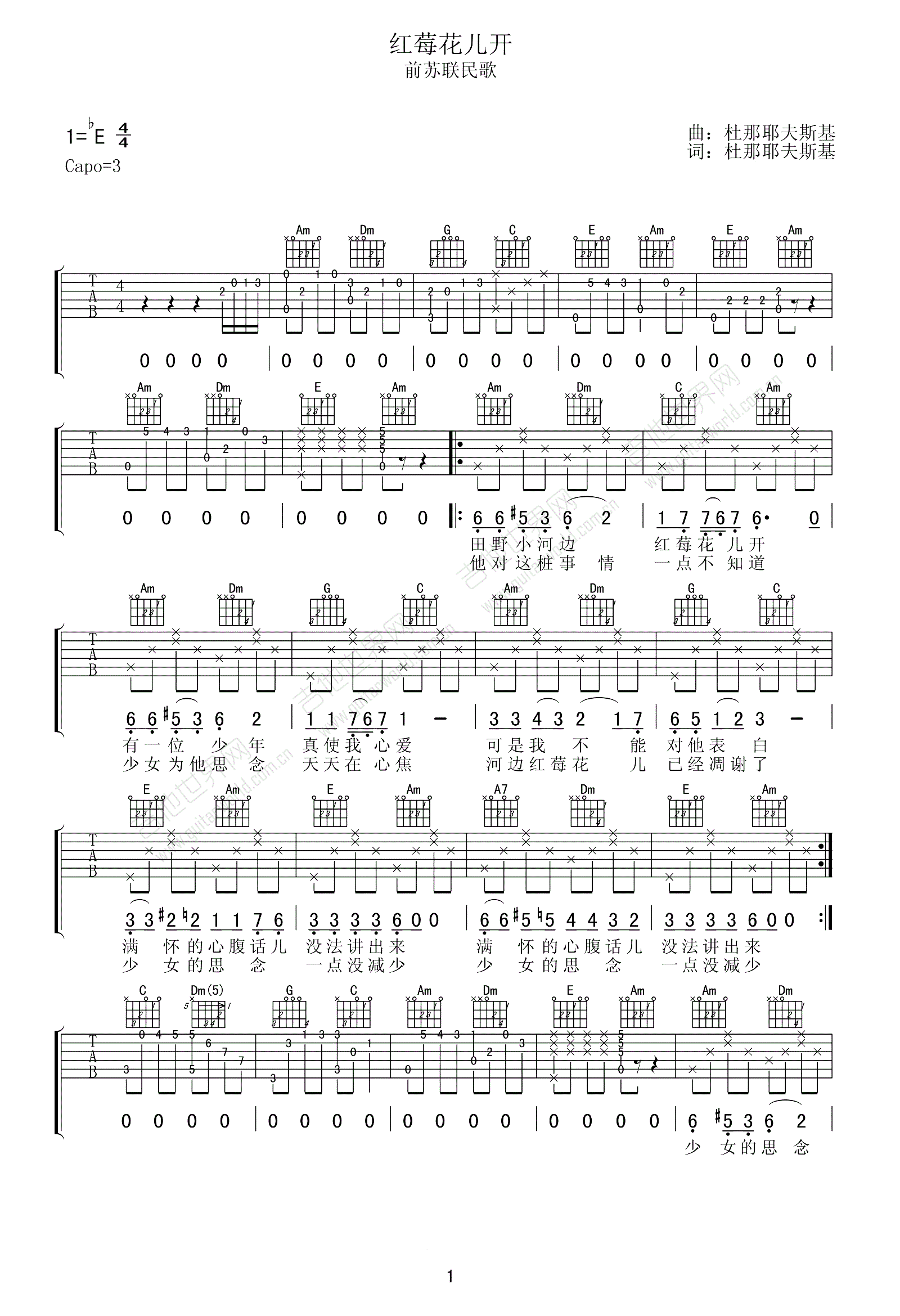 曲谱介绍: 红莓花儿开,前苏联民歌,毛不易献唱徐峥导演的《妈囧》电影主题曲。红莓花儿开六线谱,原调降E,变调夹夹三品。琴谱网网更新上传。 一首在中国广为流传的怀旧经典老歌,旋律优美动听,表达了少女对心上人的思念之情。吉他伴奏比较简单,带前奏和间奏。