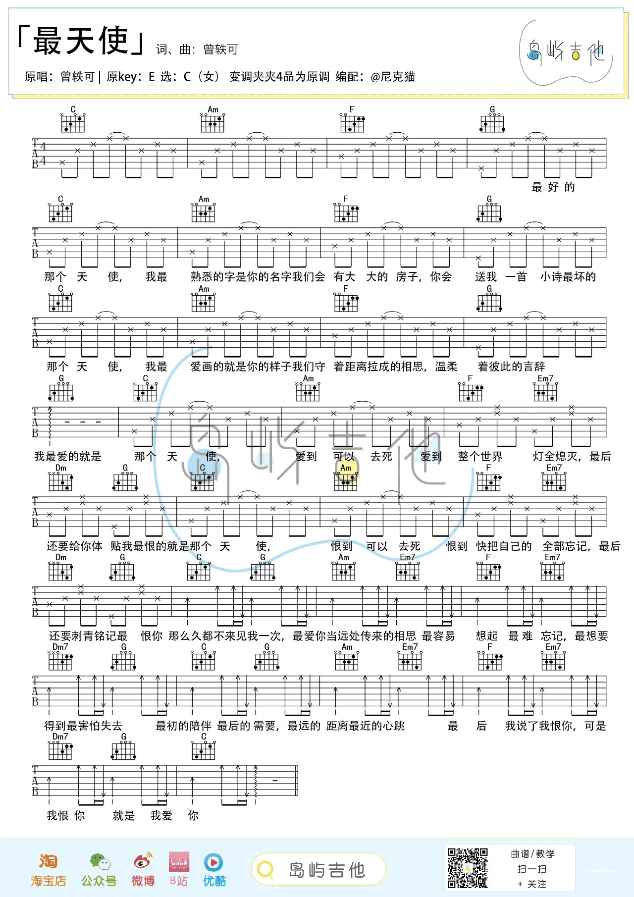 最天使吉他谱 - 曾轶可 - 吉他弹唱谱