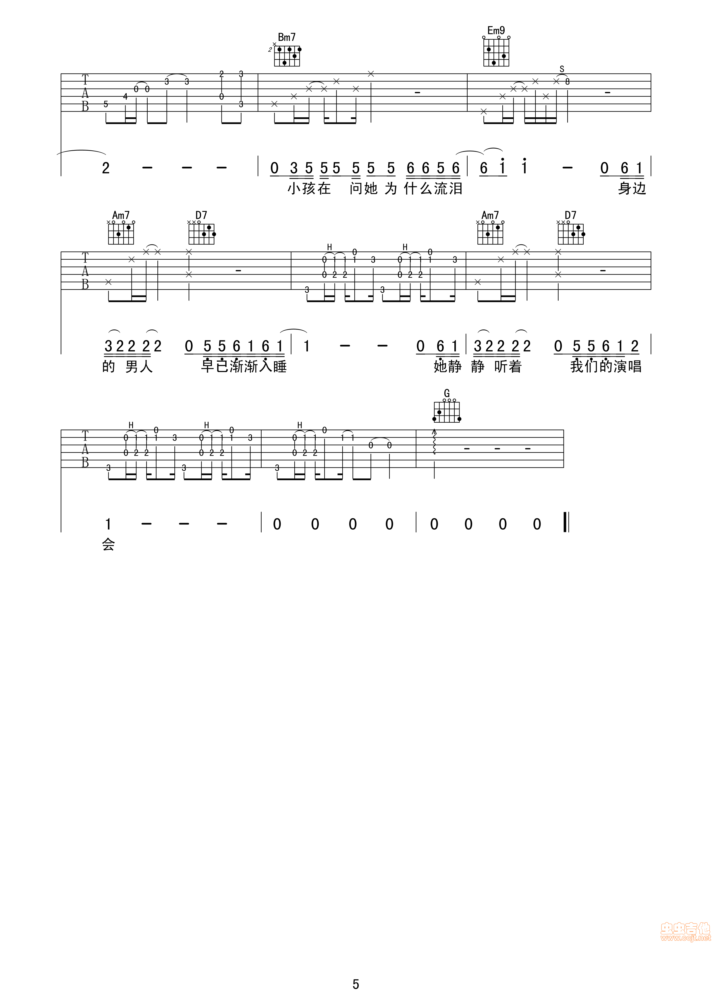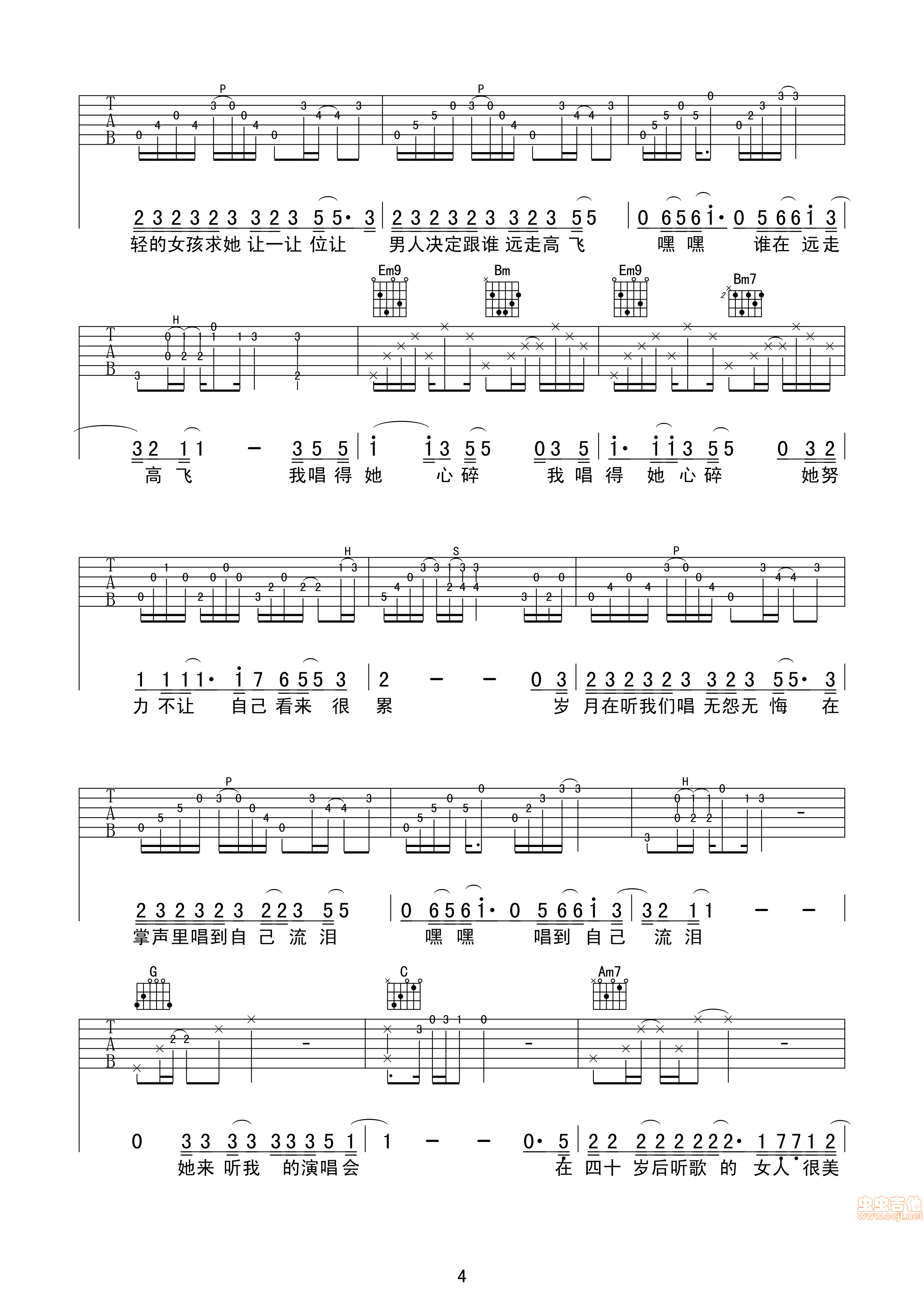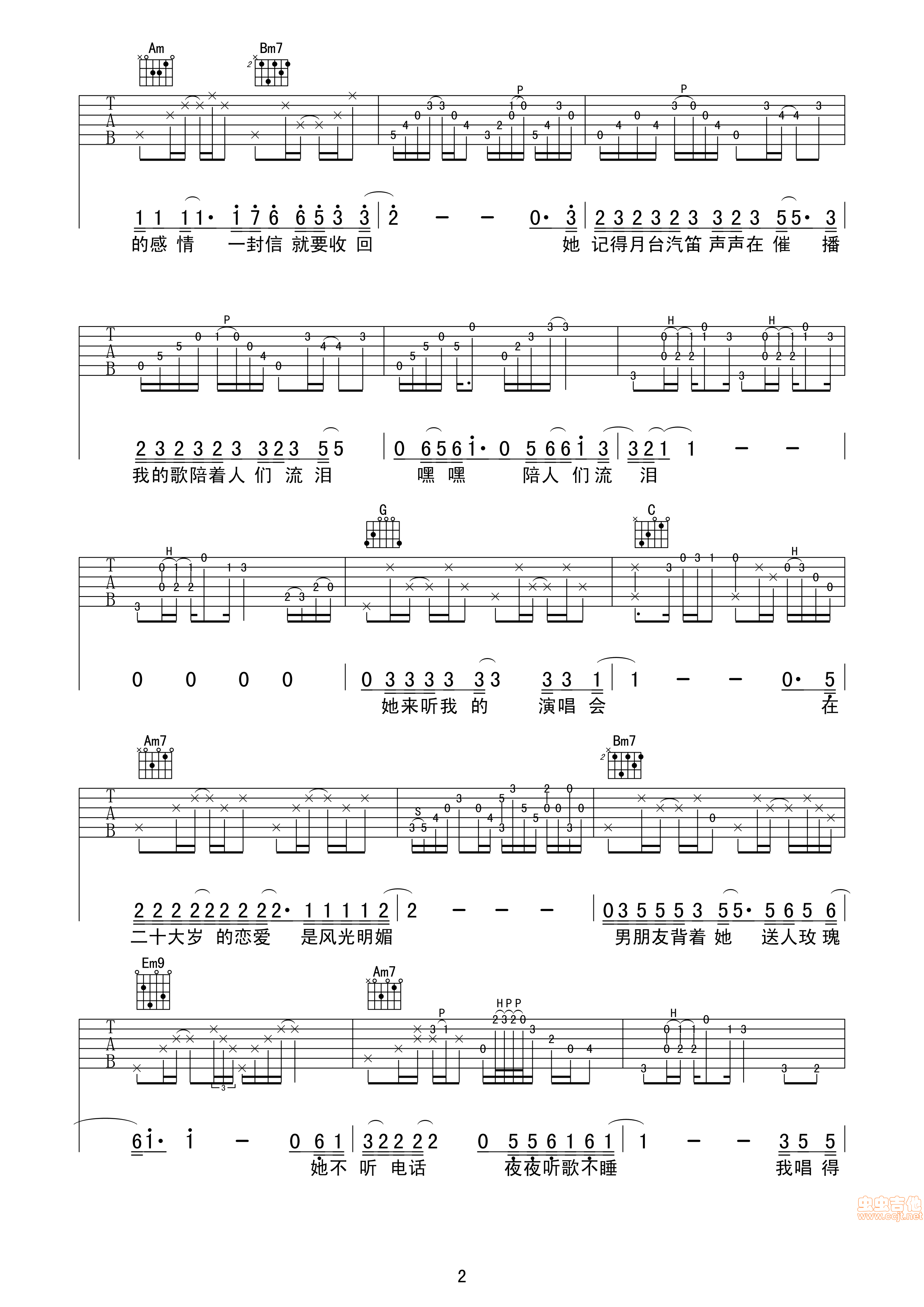 曲谱介绍: 《她来听我的演唱会(很原版)》吉他弹唱谱原版,共有5张高清图谱。