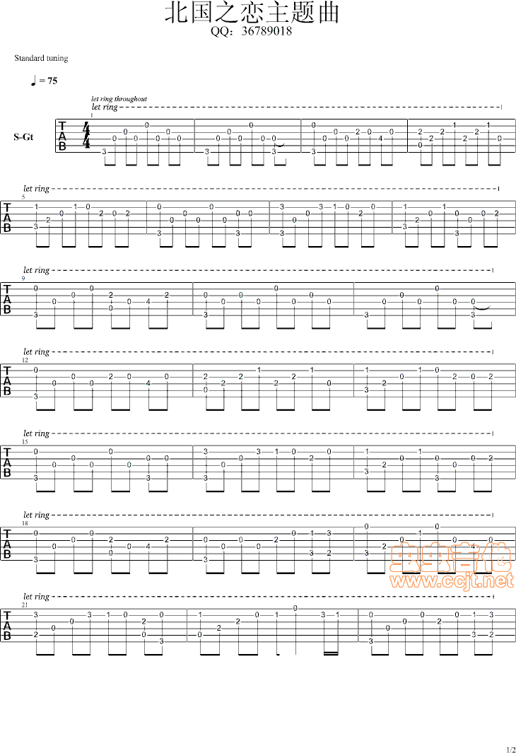 北国之恋主题曲吉他谱 - 吉他弹唱谱