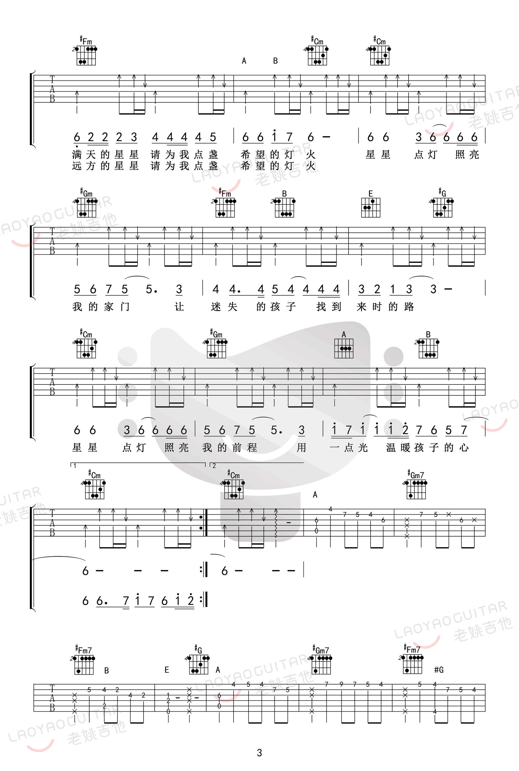 星星点灯吉他谱 - 郑智化 - 吉他弹唱谱