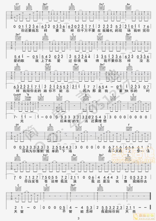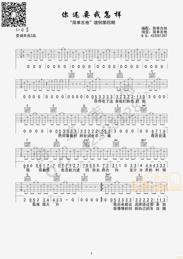 曲谱介绍: 《你还要我怎样》吉他弹唱谱,采用C调指法编配,共有3张高清图谱。
