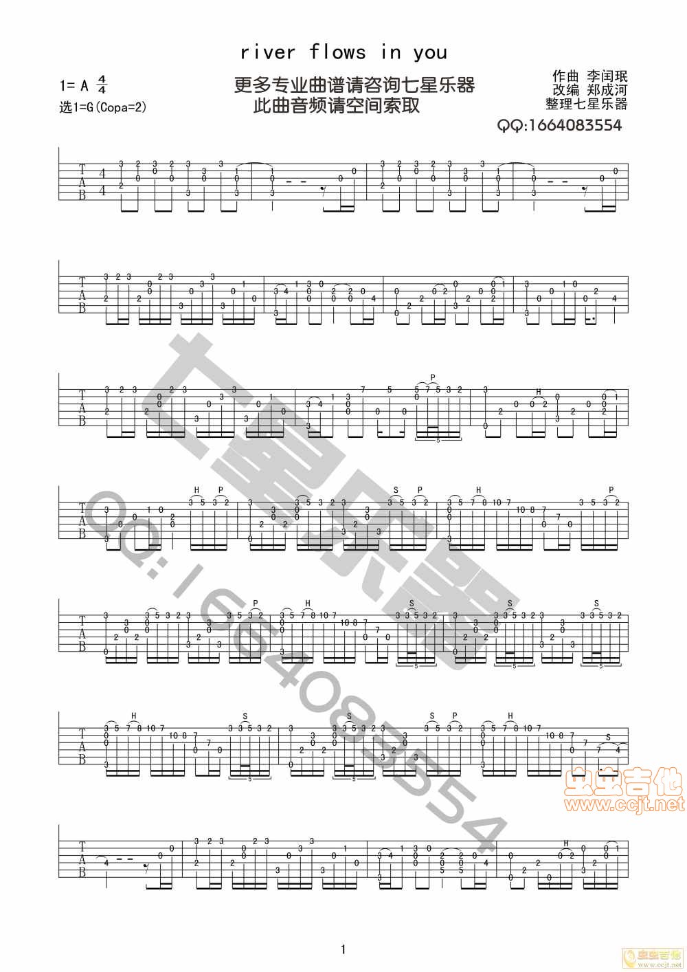郑成河版river flows in you吉他谱 - flows - 吉他弹唱谱