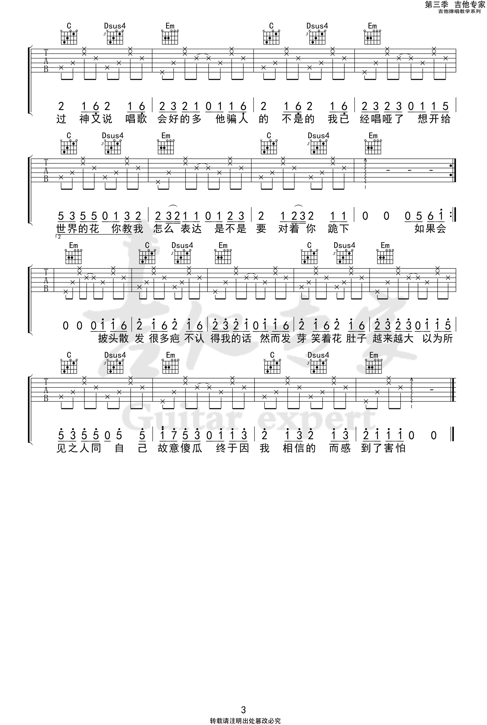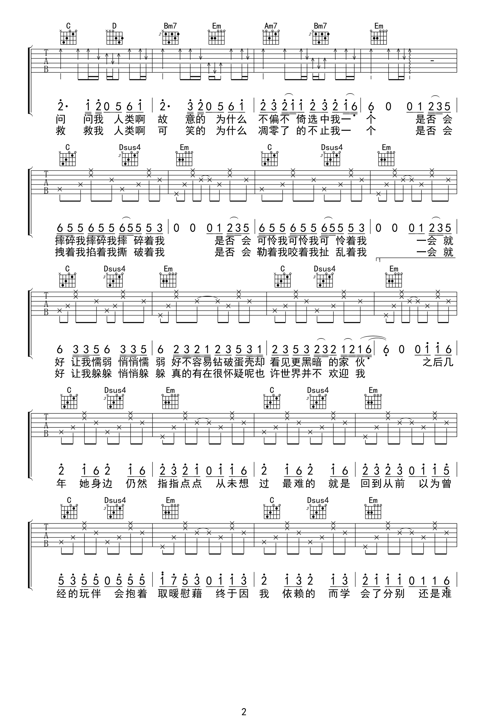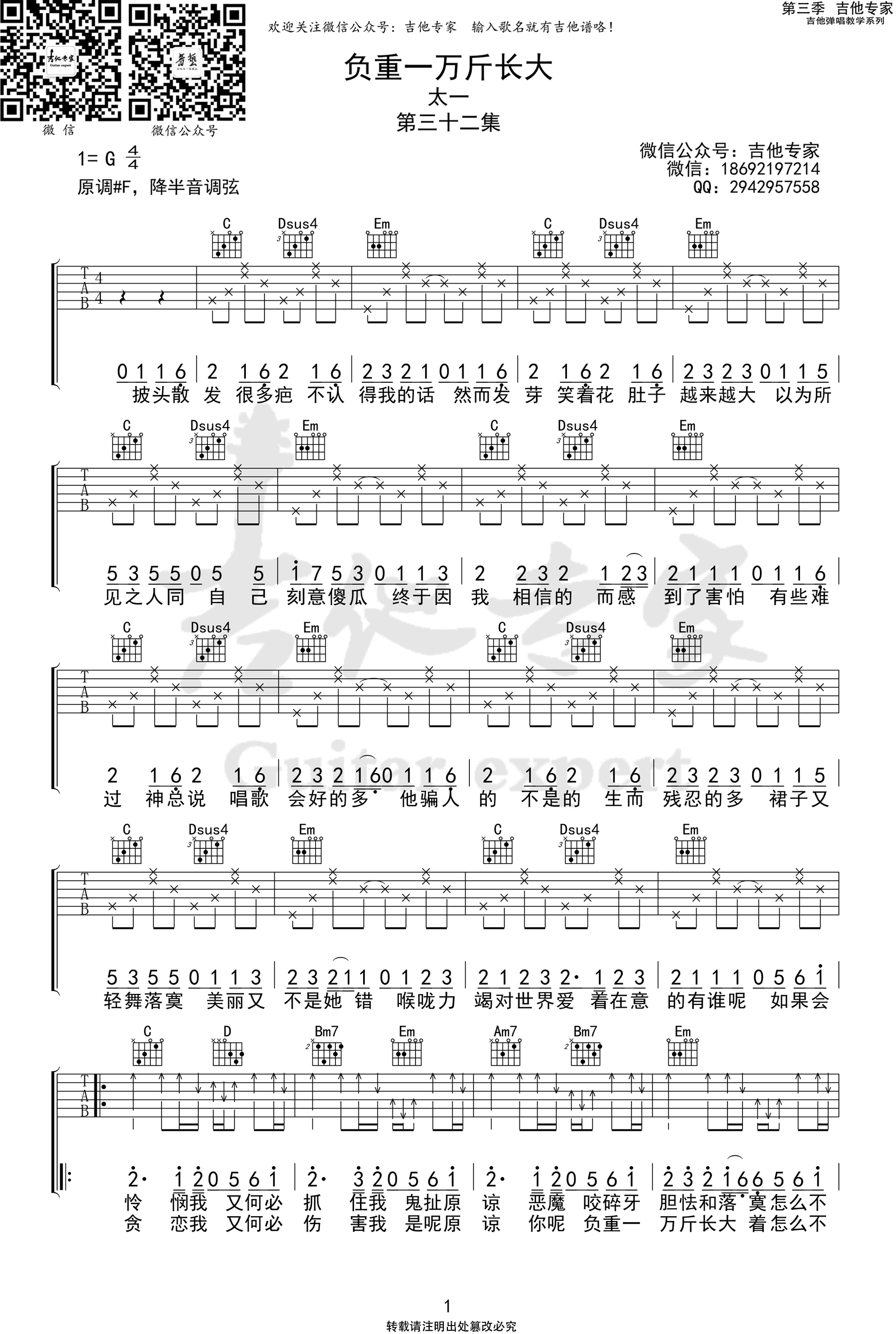 曲谱介绍: 太一《负重一万斤长大》吉他弹唱谱,共有3张高清图谱。