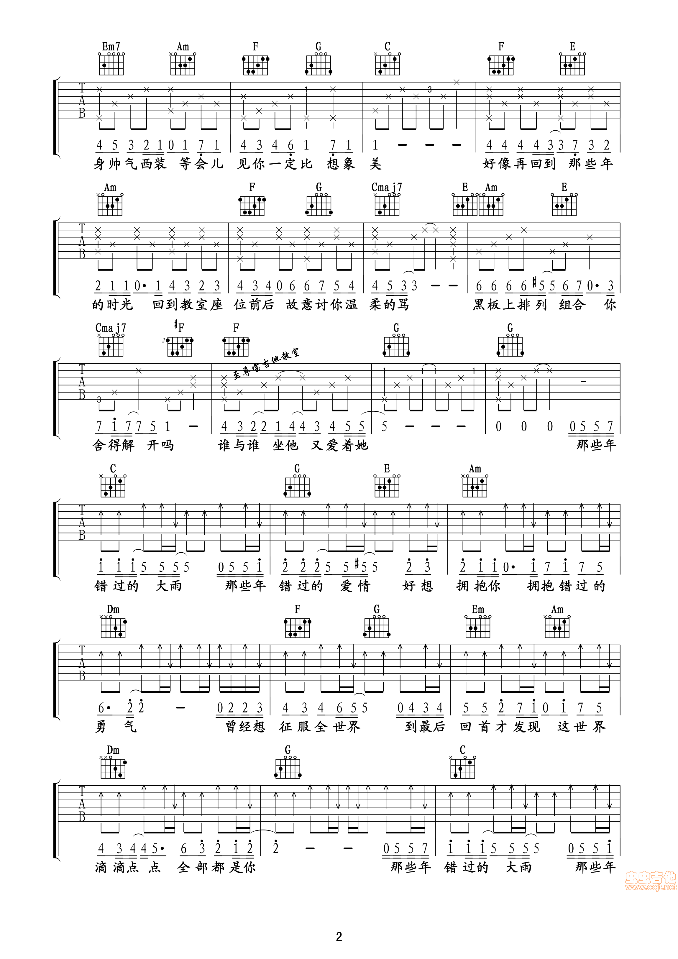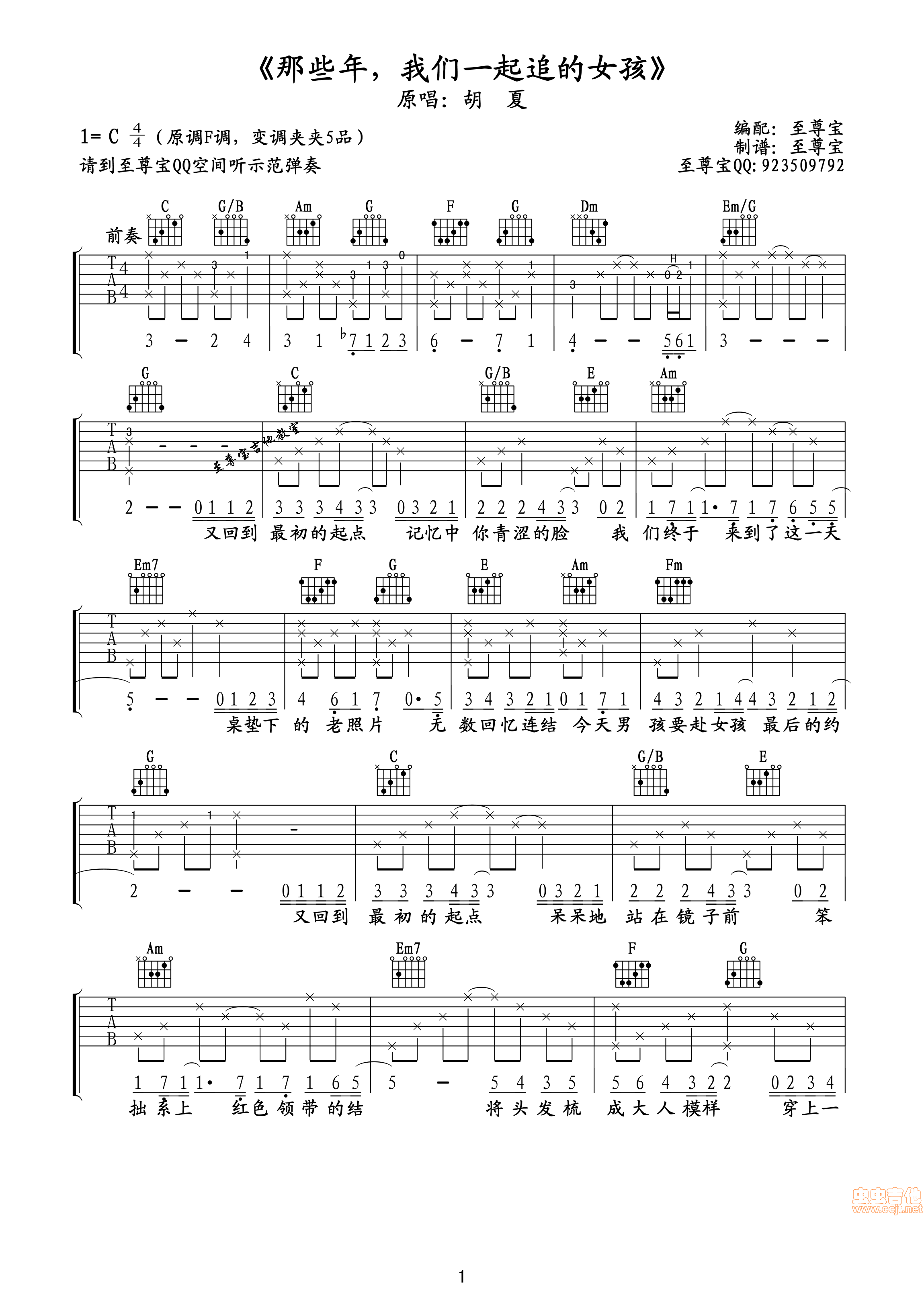 曲谱介绍: 《那些年,我们一起追的女孩》吉他弹唱谱,采用C调指法编配,共有3张高清图谱。