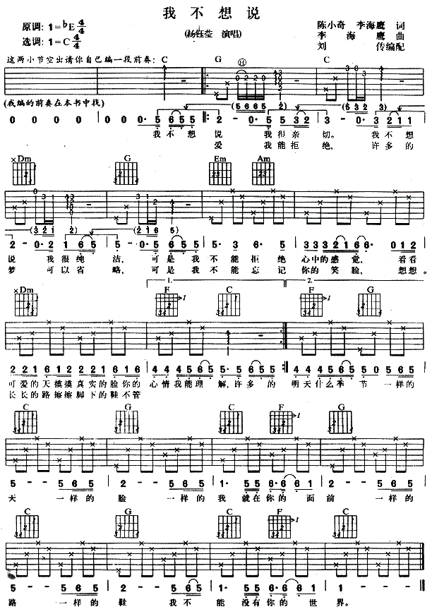 当前位置:琴谱网>吉他弹唱>我不想说 杨钰莹 图片