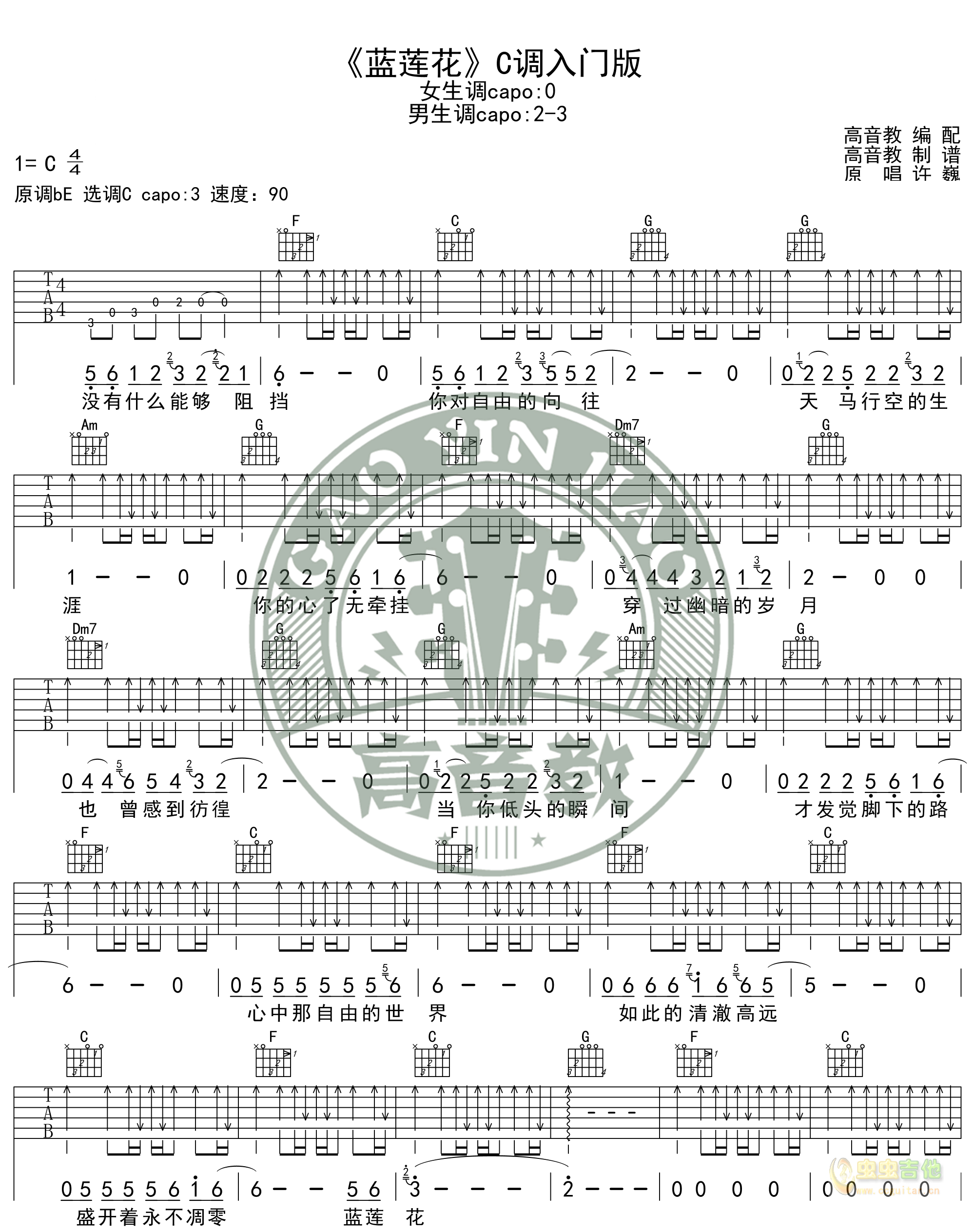 当前位置:琴谱网>吉他弹唱>蓝莲花 许巍 图片