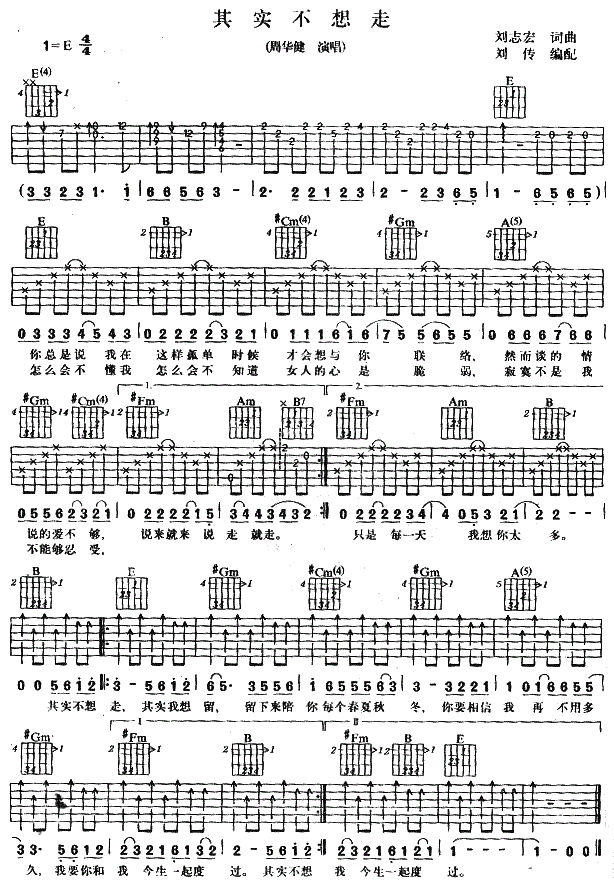 当前位置:琴谱网>吉他弹唱>其实不想走 周华健 图片