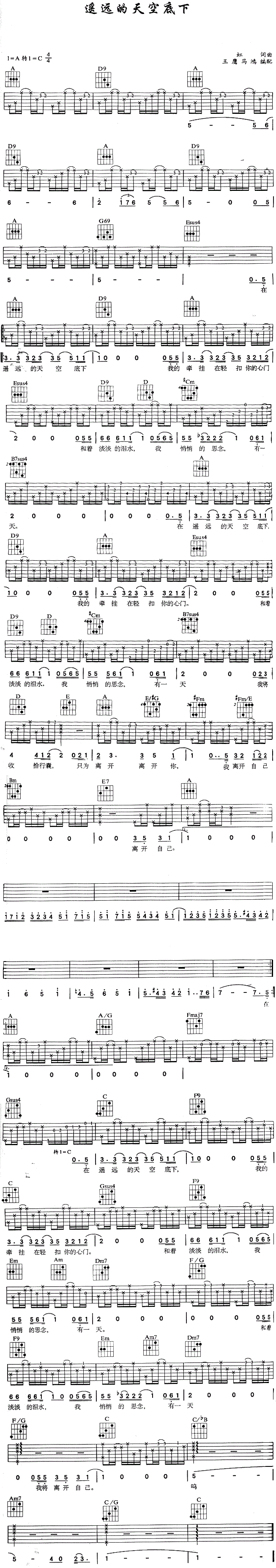 遥远的天空底下 齐秦 图片吉他谱 - 遥远的天空底下 - 吉他弹唱谱