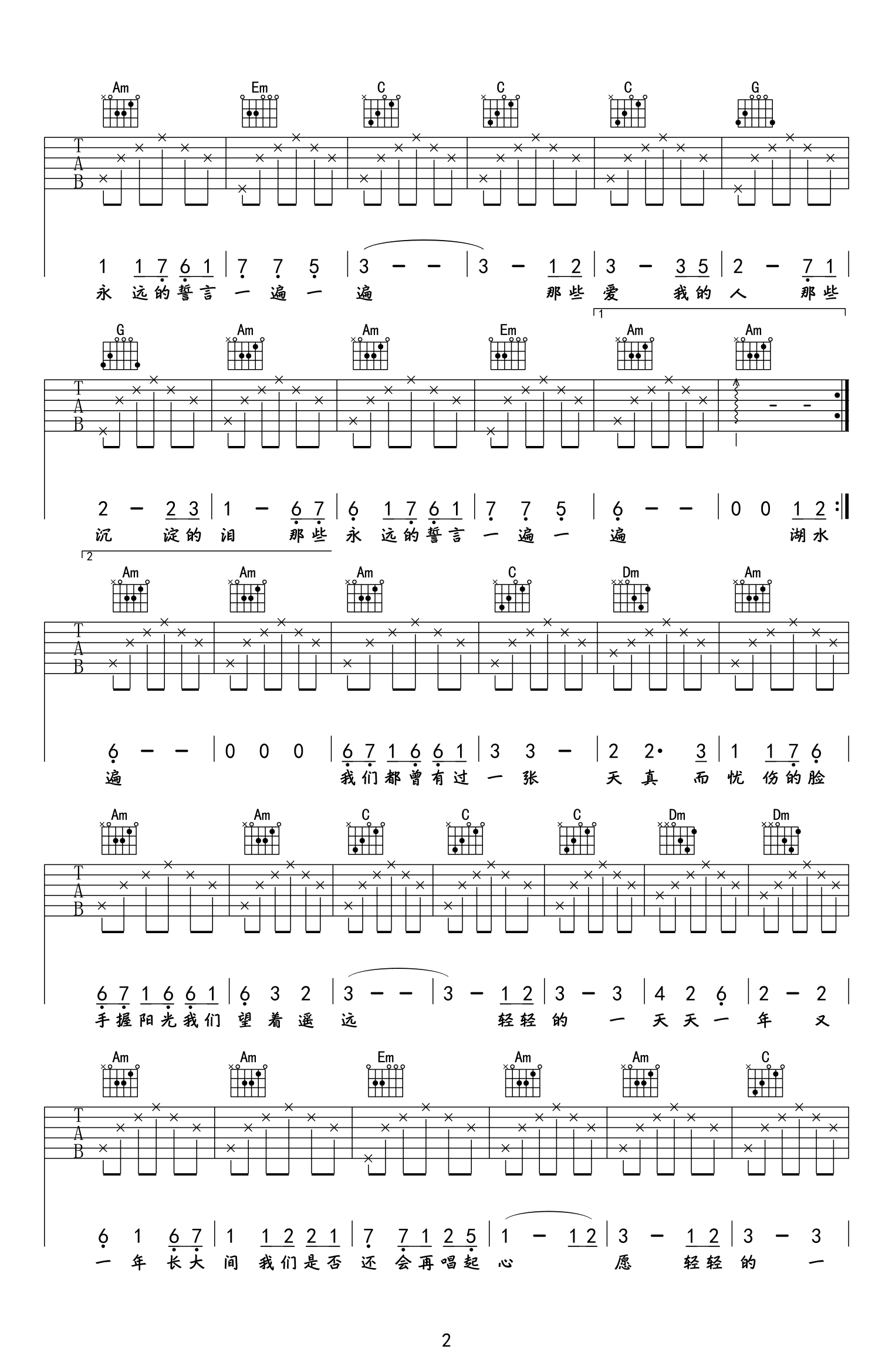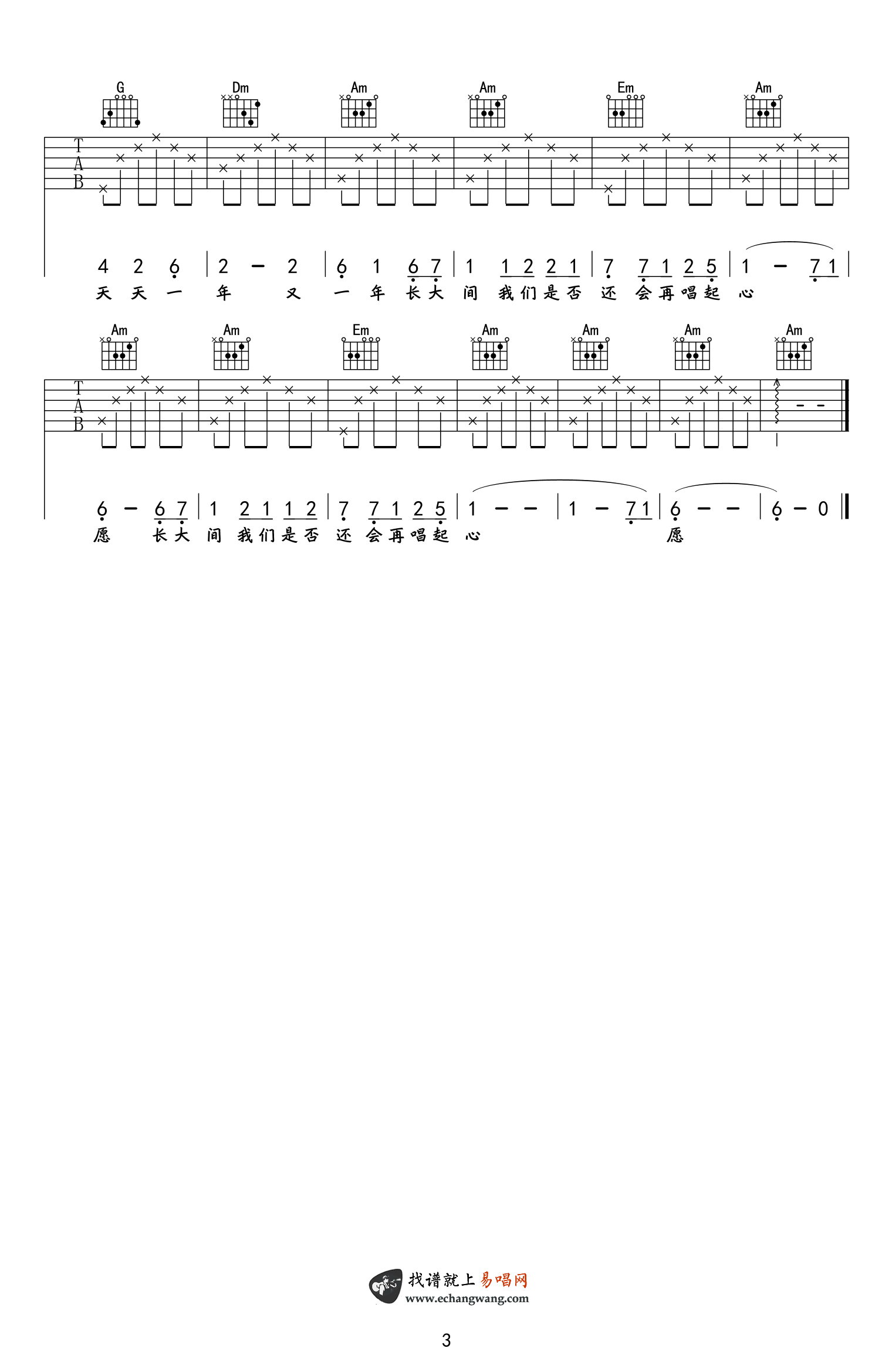 曲谱介绍: 四个女生《心愿》吉他弹唱谱,共有3张高清图谱。