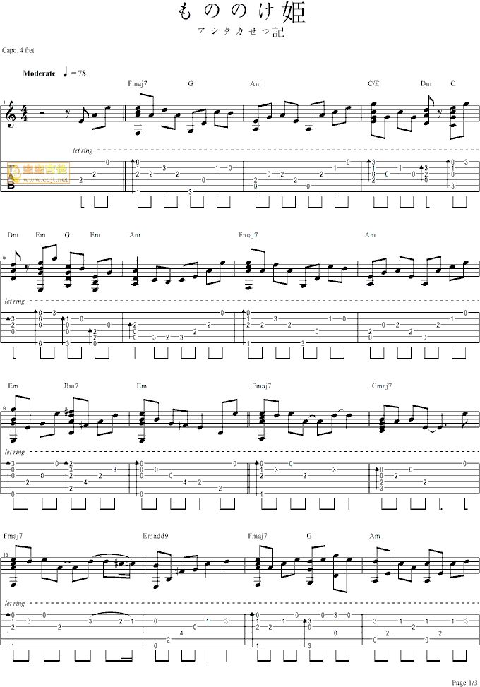 宫崎骏 幽灵公主吉他谱 - 宫崎骏 - 吉他弹唱谱