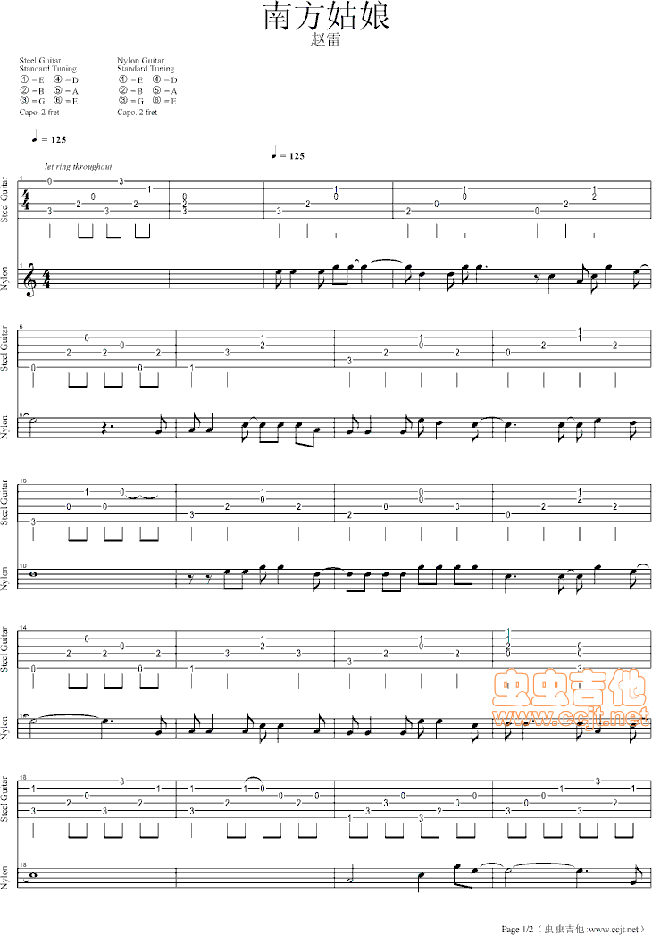 南方姑娘吉他谱 - 吉他弹唱谱