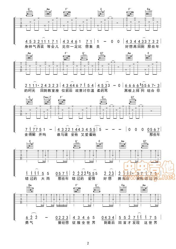 曲谱介绍: 《那些年》吉他弹唱谱,共有3张高清图谱。