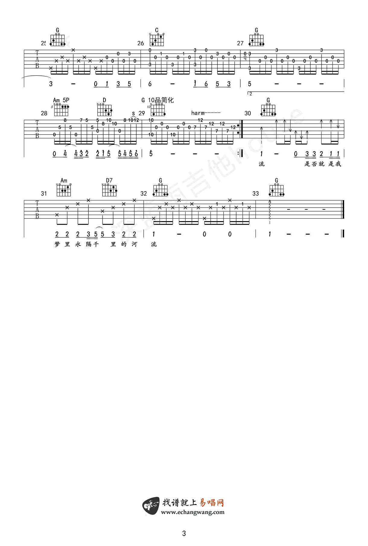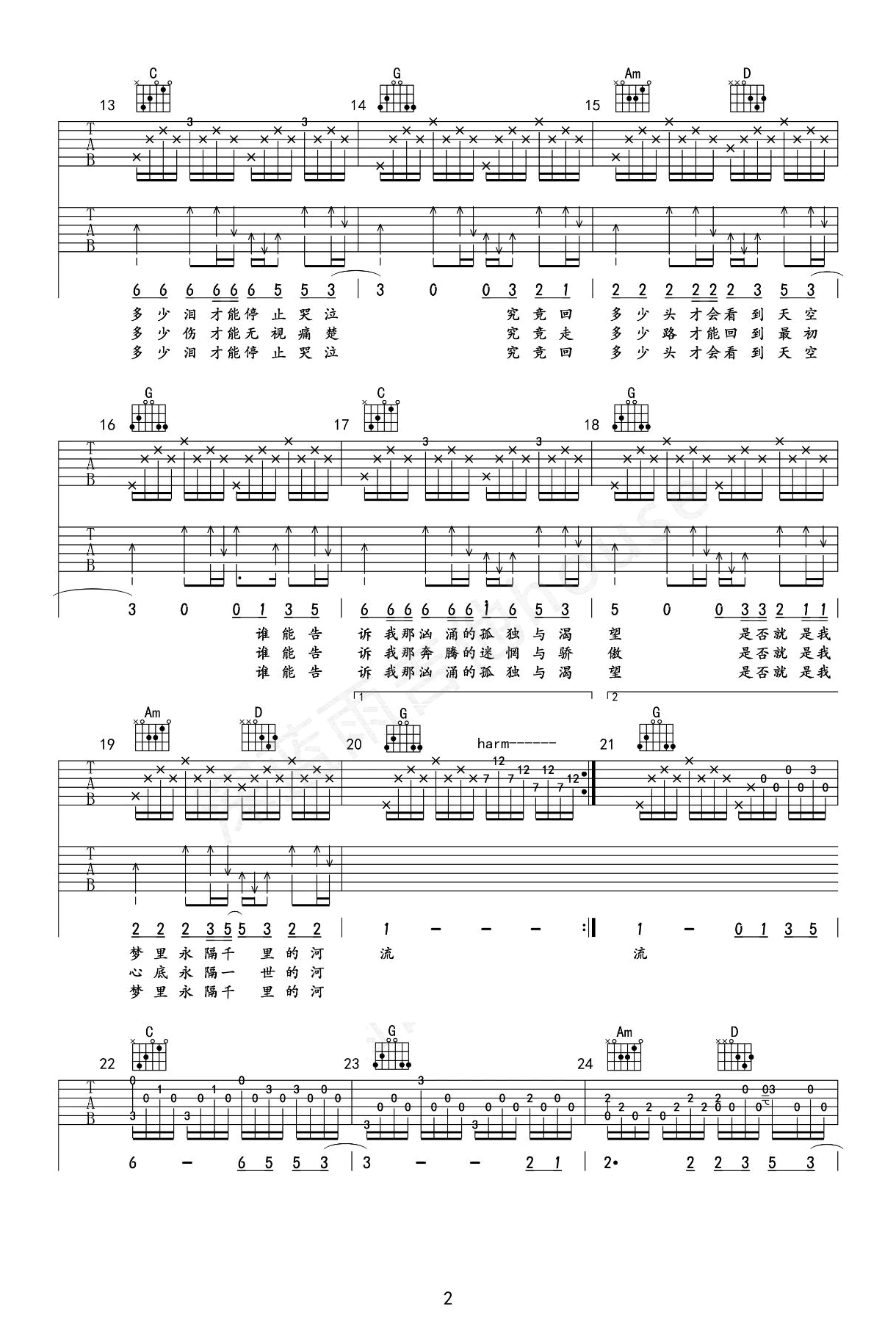曲谱介绍: 汪峰《河流》吉他弹唱谱,共有3张高清图谱。