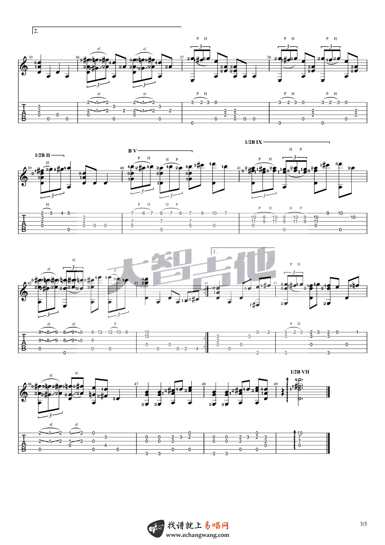 曲谱介绍: 动漫歌曲《哆啦A梦》吉他独奏谱,共有3张高清图谱。