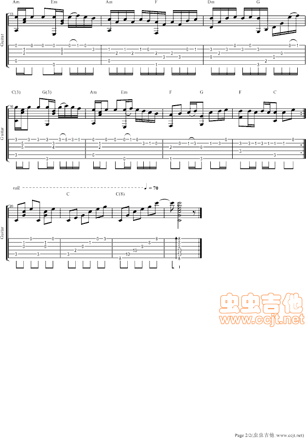 千与千寻吉他谱 - 千与千寻(指弹) - 吉他独奏谱