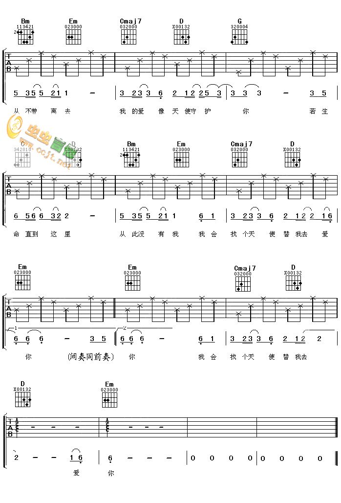 天使的翅膀吉他谱 - 吉他弹唱谱
