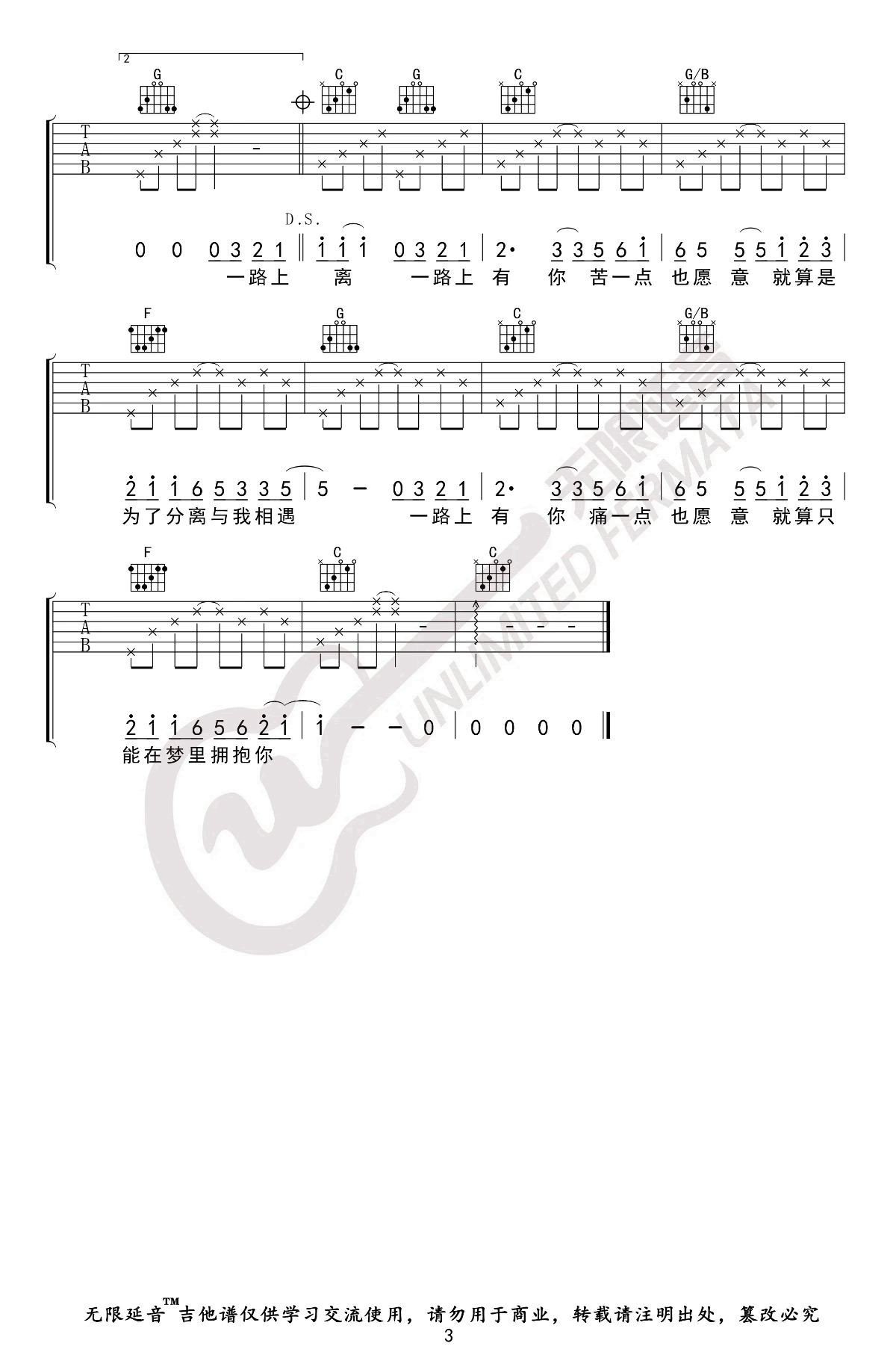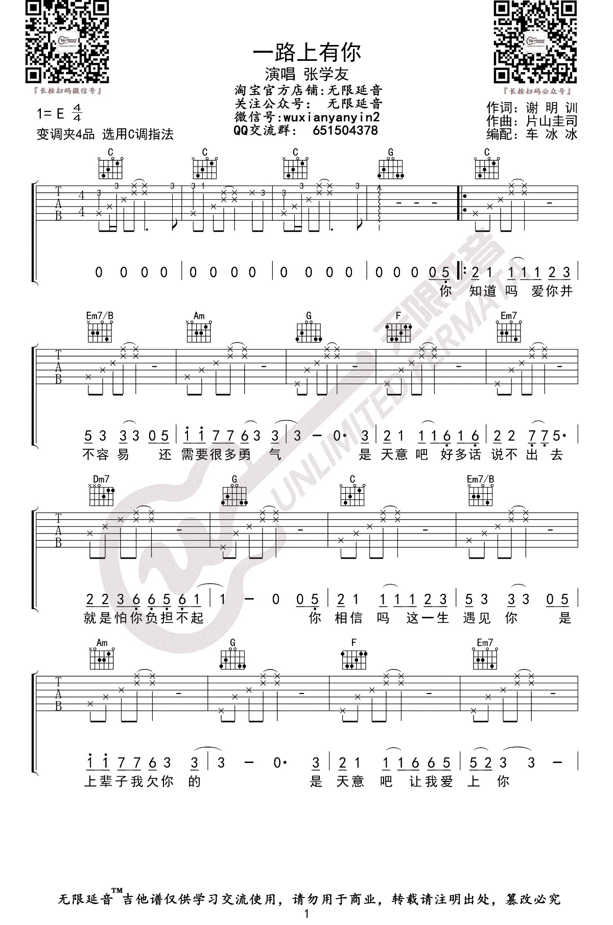 曲谱介绍: 张学友《一路上有你》吉他弹唱谱,共有3张高清图谱。