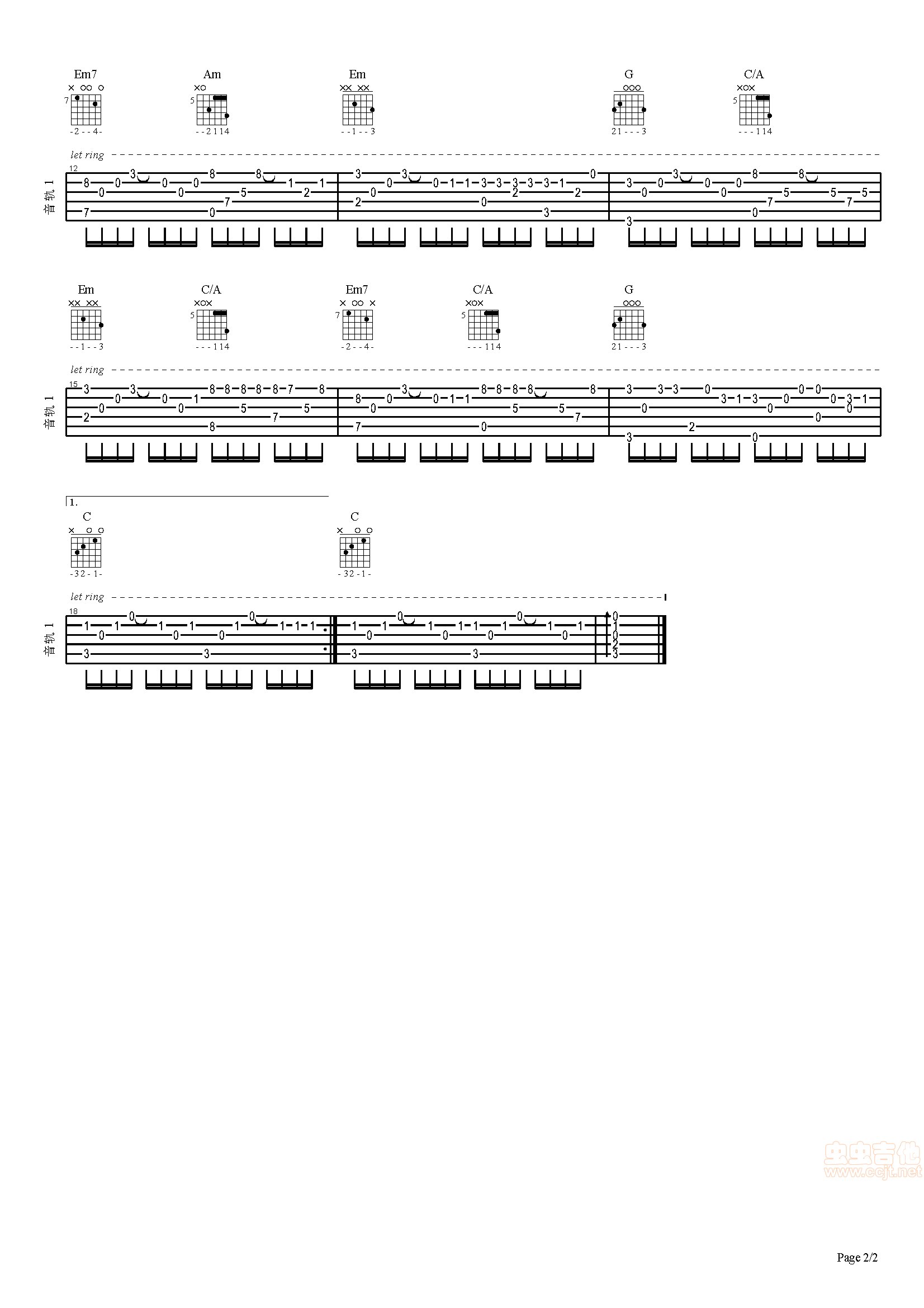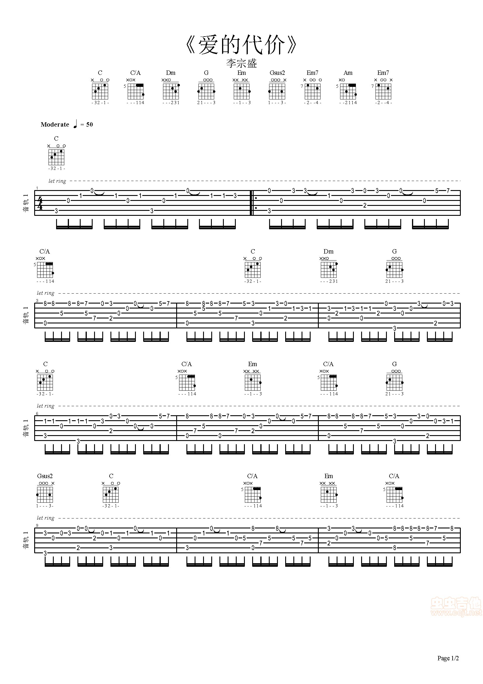 曲谱介绍: 《爱的代价》吉他弹唱谱,共有2张高清图谱,免翻页排版设计。