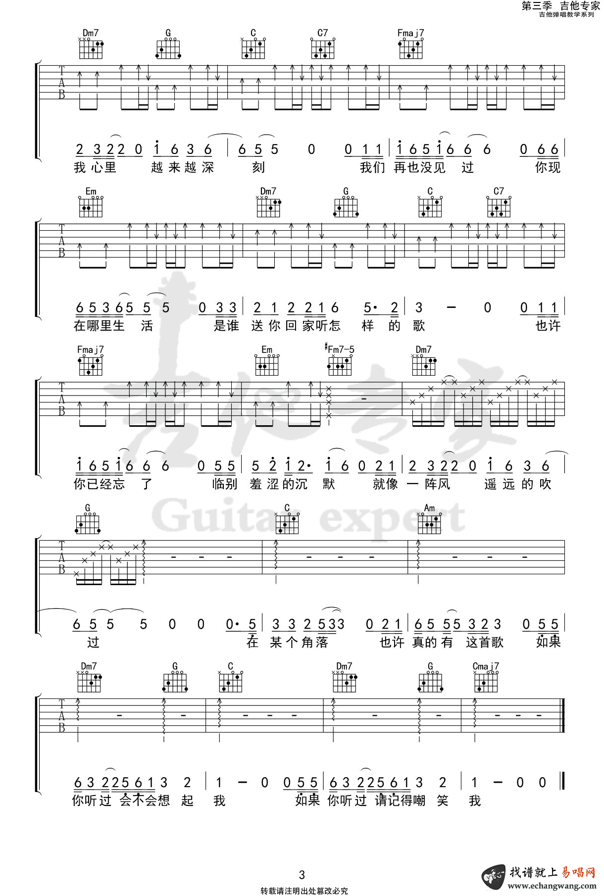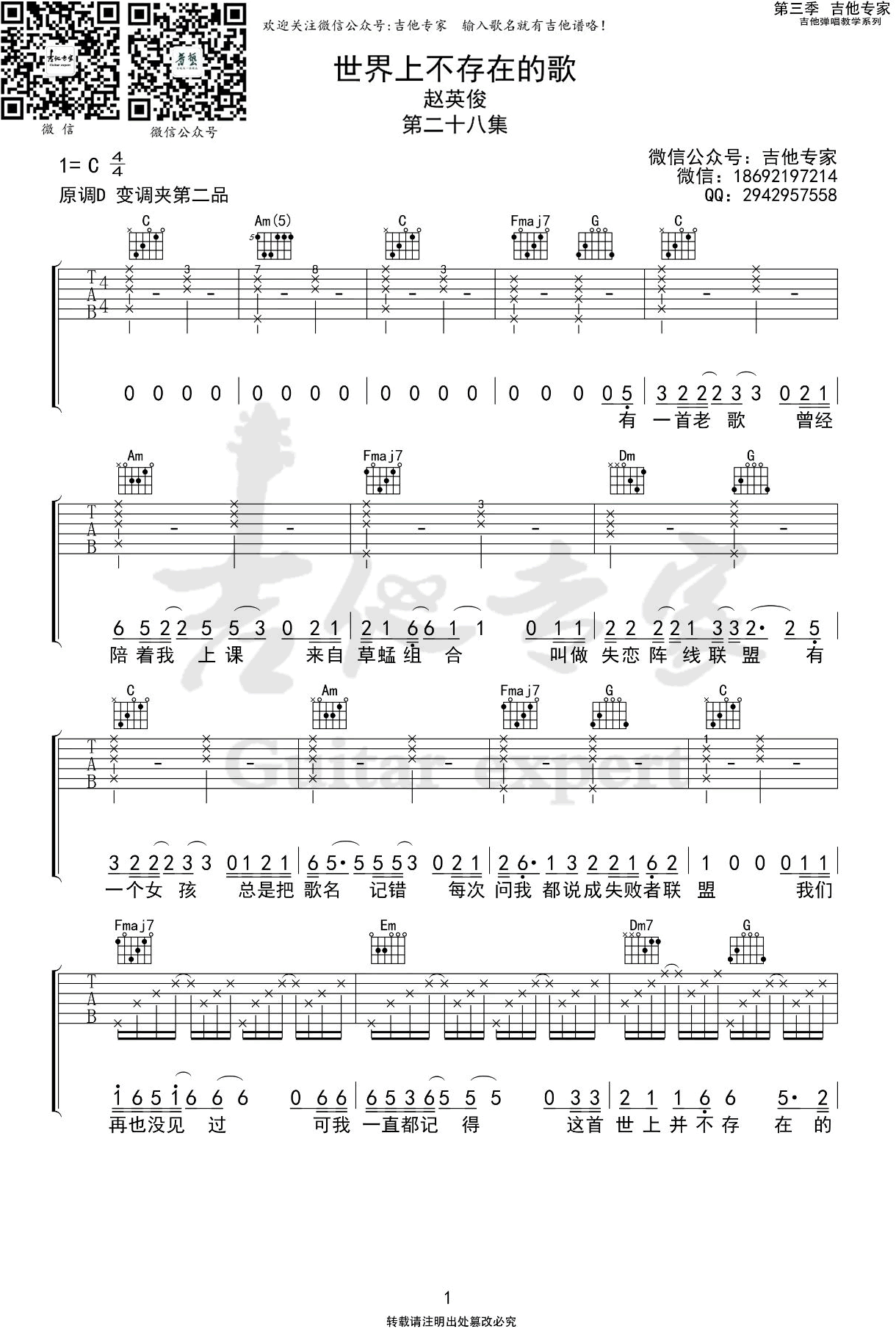 曲谱介绍: 赵英俊《世界上不存在的歌》吉他弹唱谱,共有3张高清图谱。