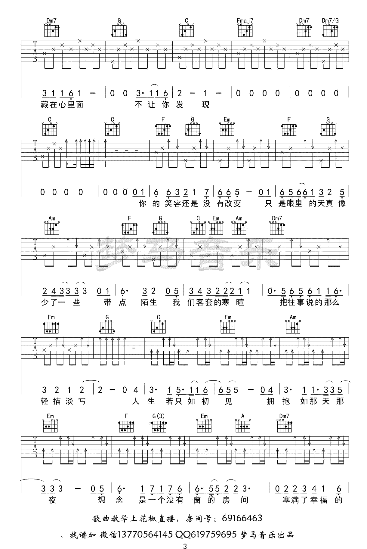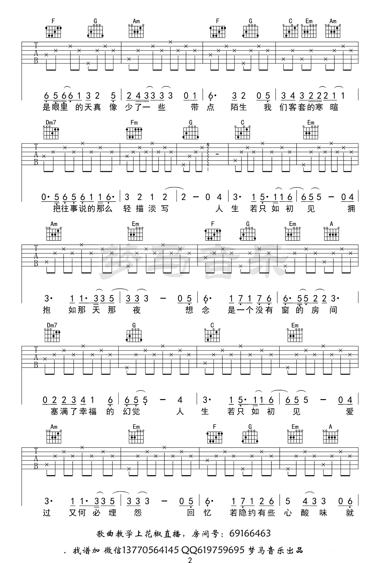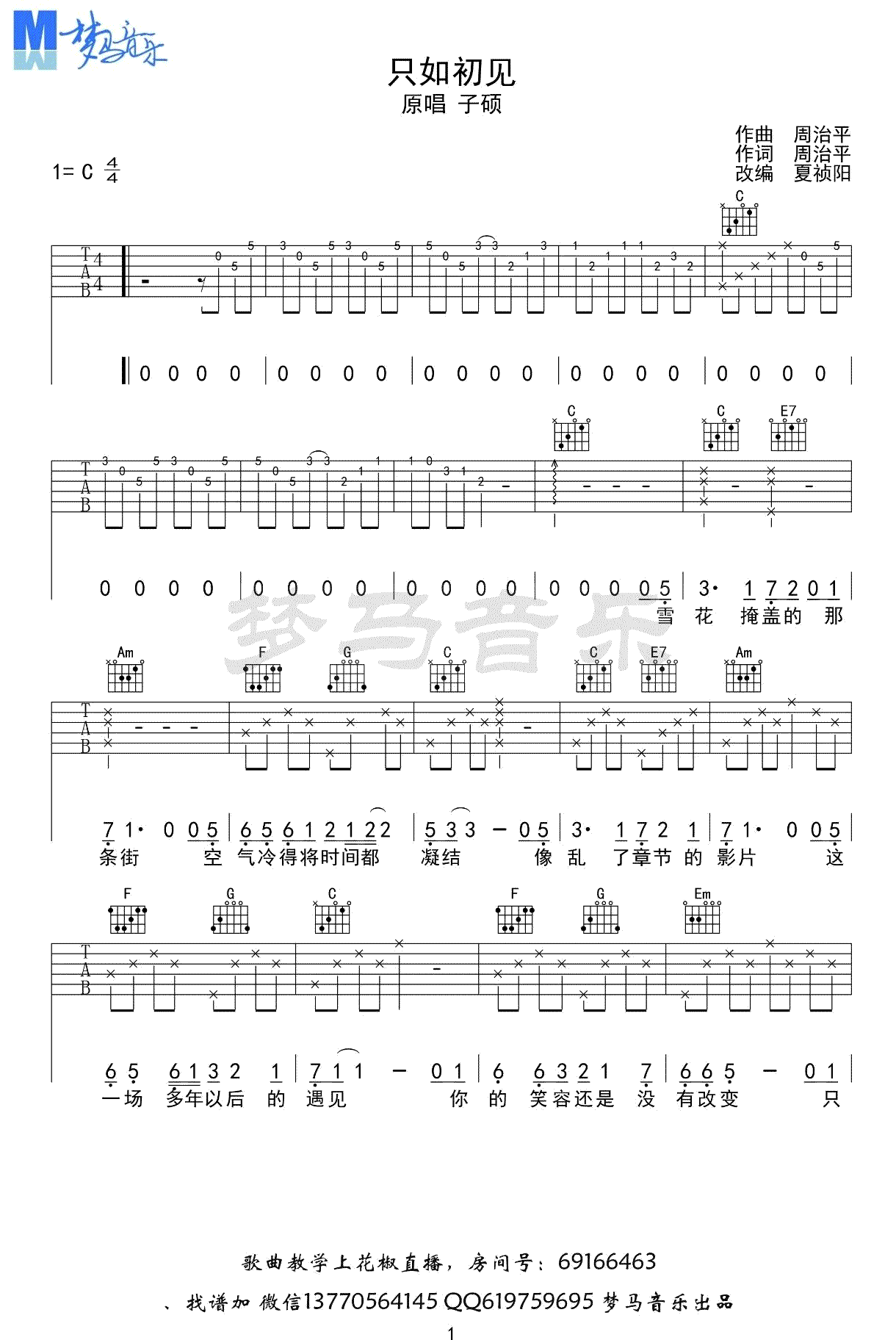 曲谱介绍: 子硕《只如初见》吉他弹唱谱,共有4张高清图谱。