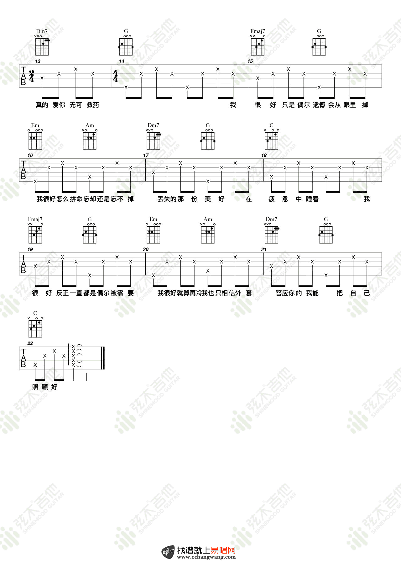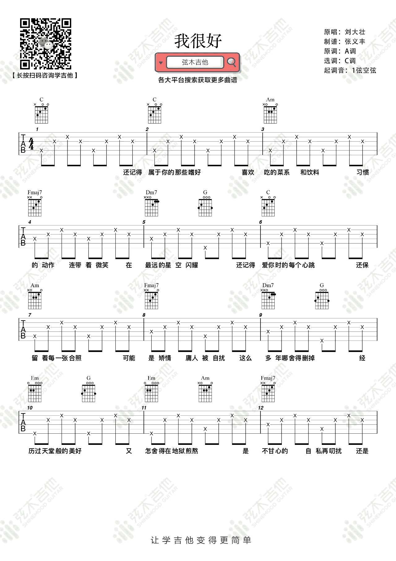 我很好吉他谱 - 刘大壮 - 吉他弹唱谱