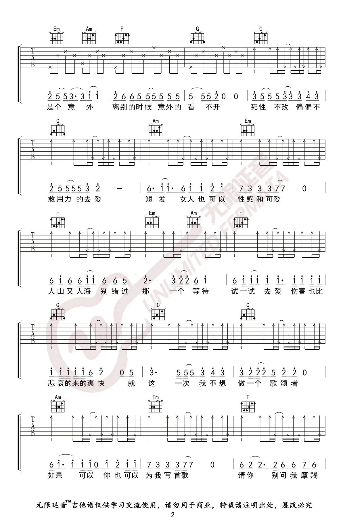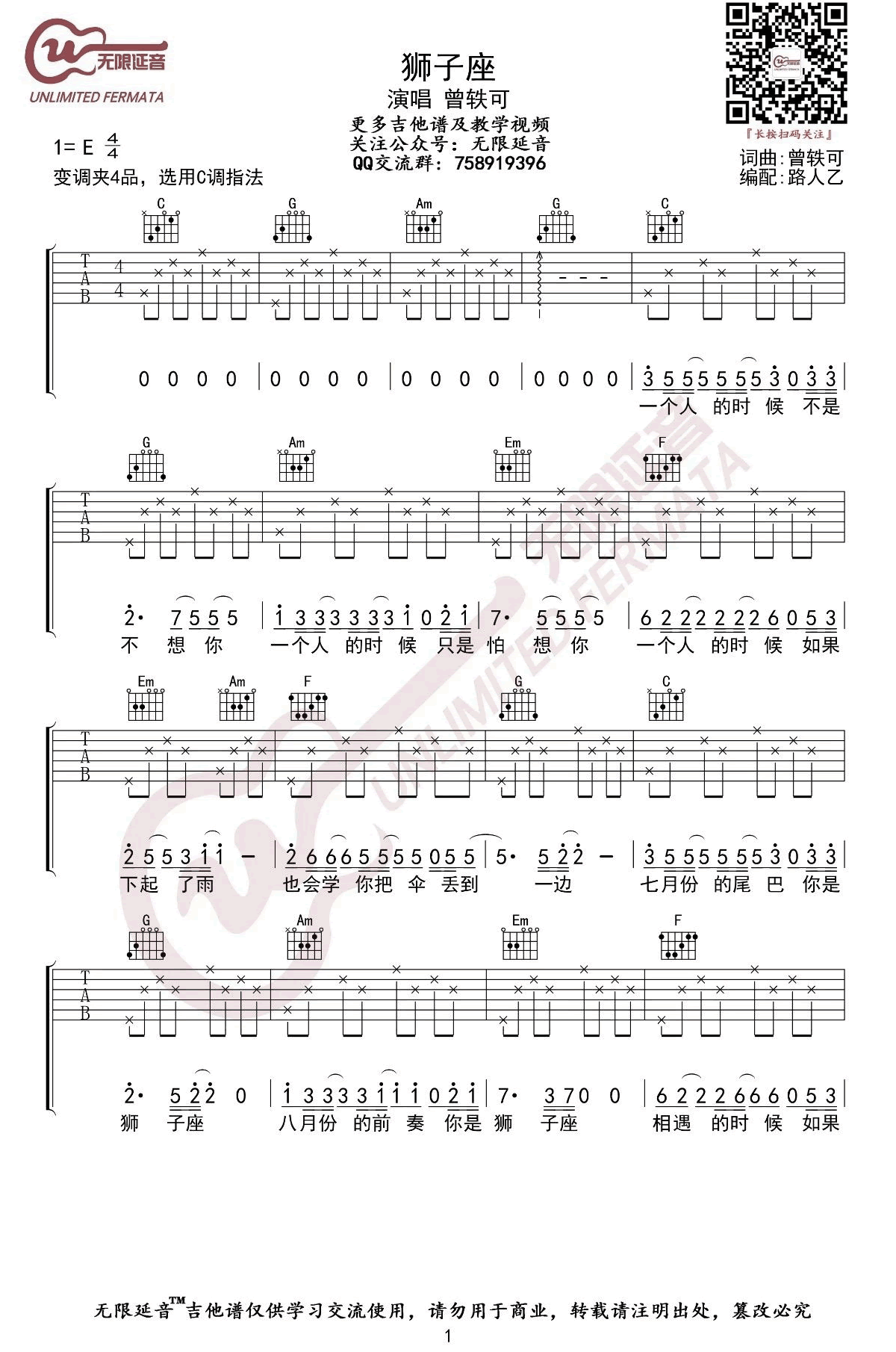 狮子座吉他谱 - 曾轶可 - 吉他弹唱谱