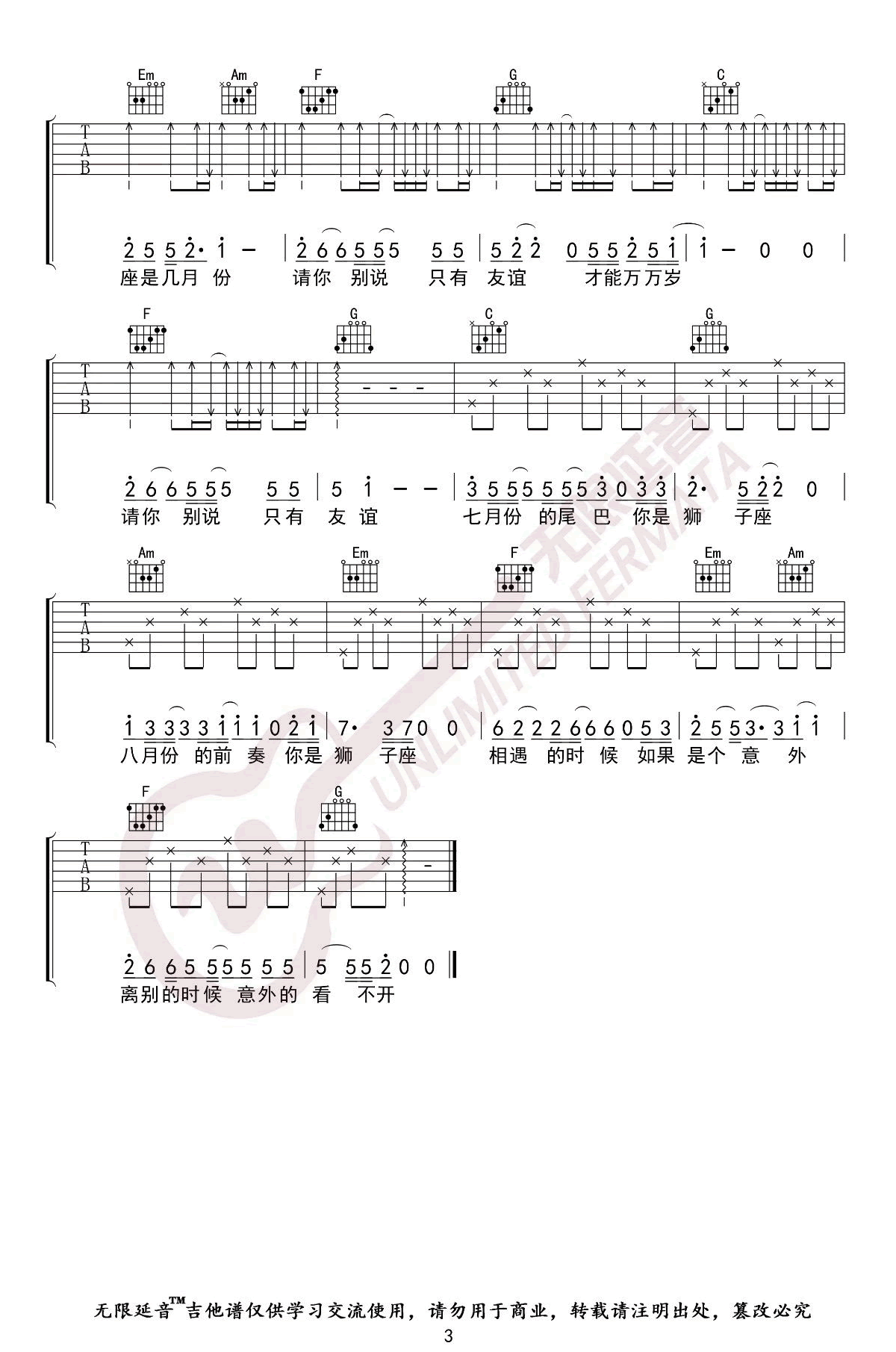 当前位置:琴谱网>吉他弹唱>狮子座