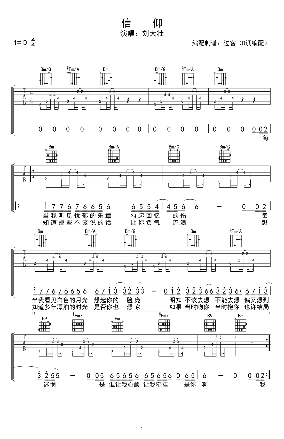 信仰吉他谱 - 刘大壮 - 吉他弹唱谱